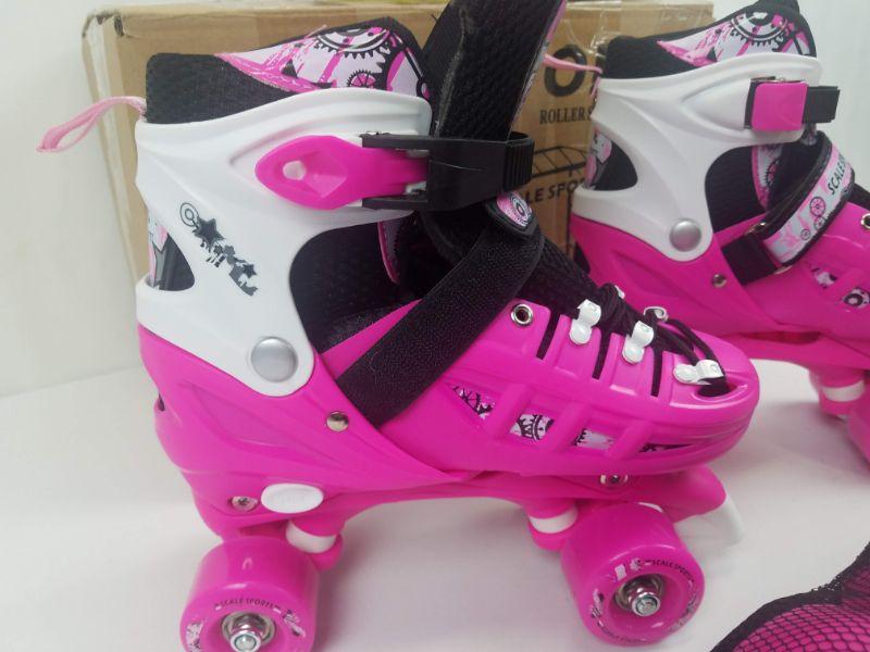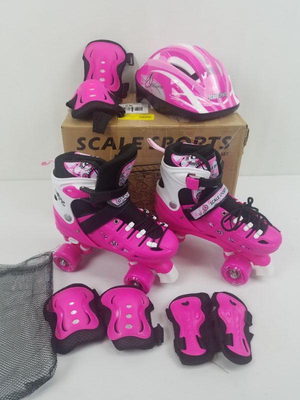 Pink Roller Skates Set, Includes Helmet, Elbow/Wrist/Knee Pads, Kids Shoe Sizes 4-6 - New