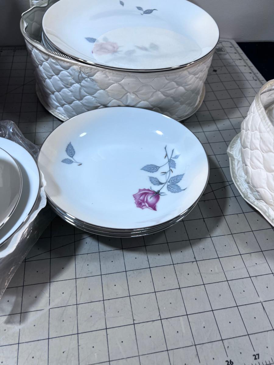 Pink Rose ZYLSTRA Fine China Zylstra Rose Pattern PARTIAL SET with  Bags and Boxes for storage