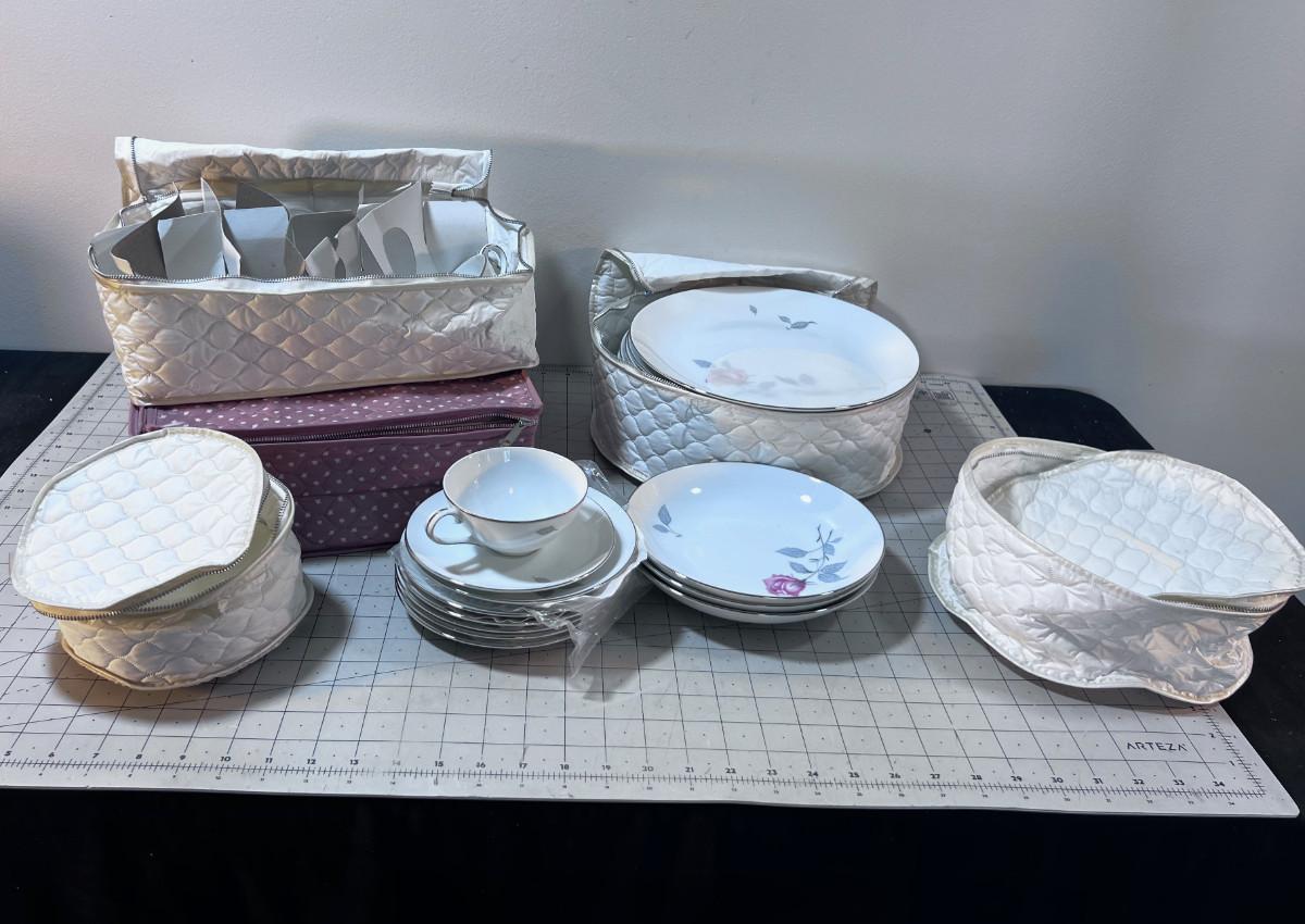 Pink Rose ZYLSTRA Fine China Zylstra Rose Pattern PARTIAL SET with Bags and Boxes for storage