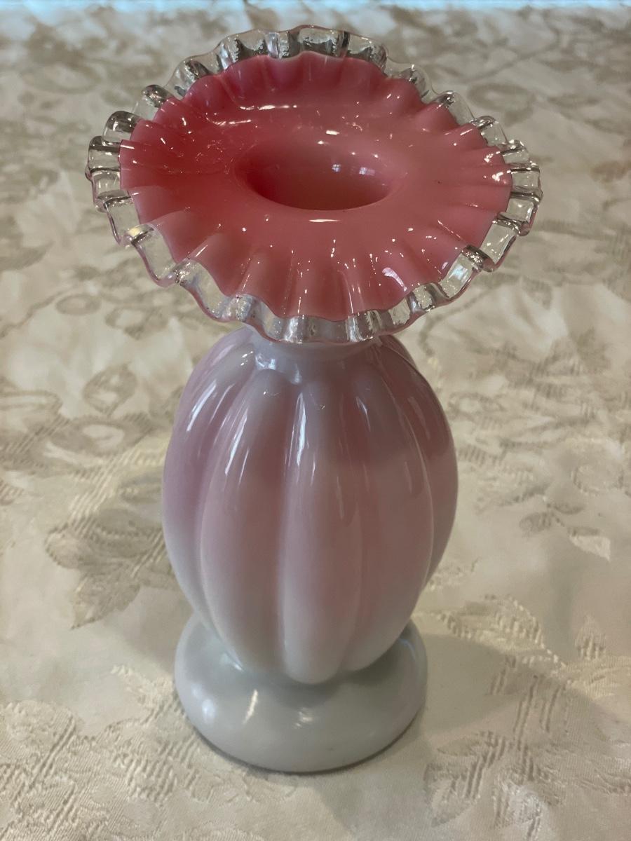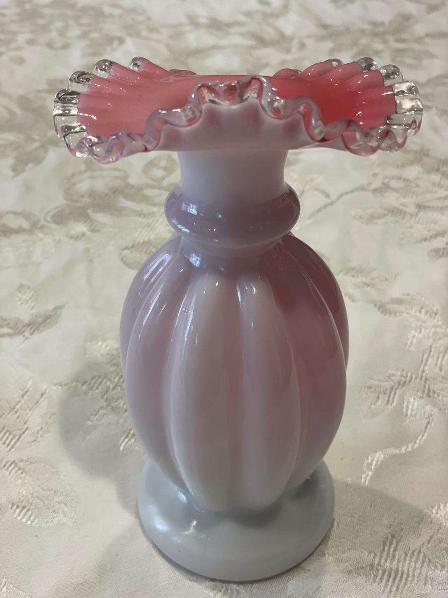 Pink ruffle milk glass vase