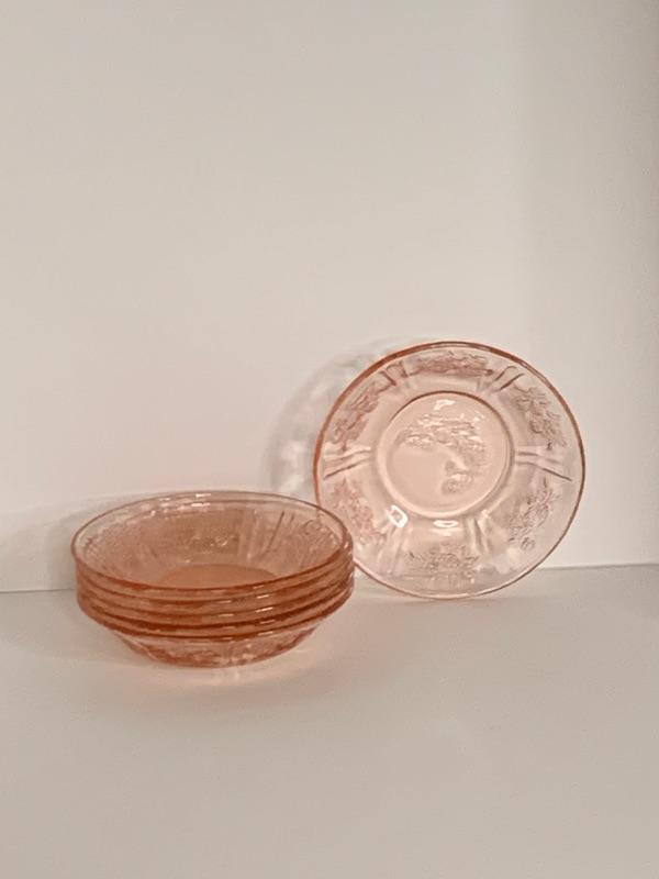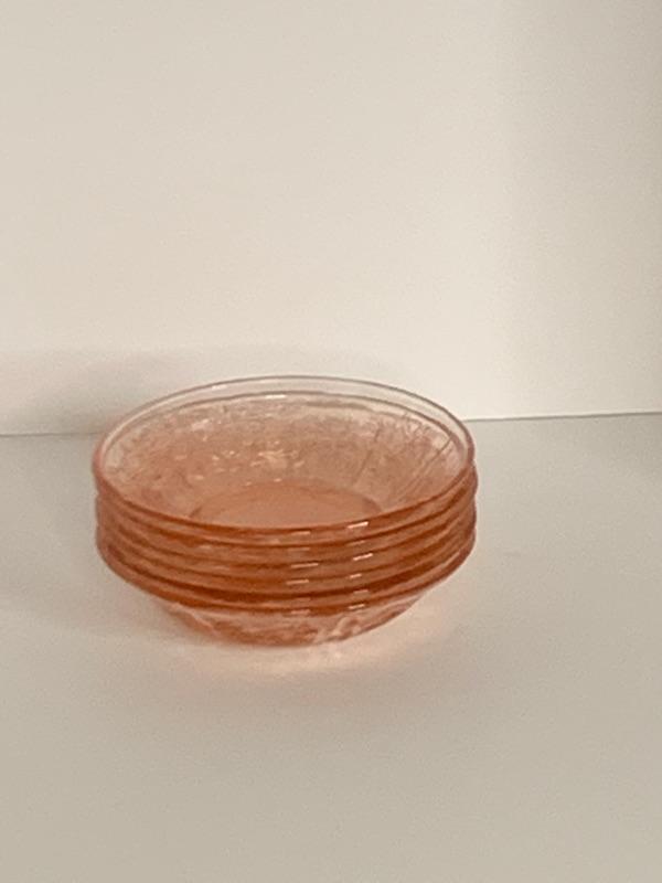 Depression Glass Sharon Pink Berry 5" Round Bowls (Set of 6)