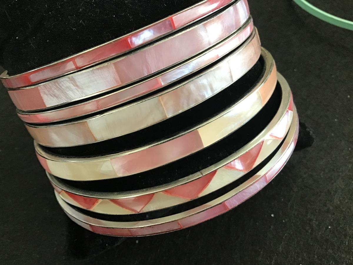 Pink Shell inlay Vintage Bangles set of 7