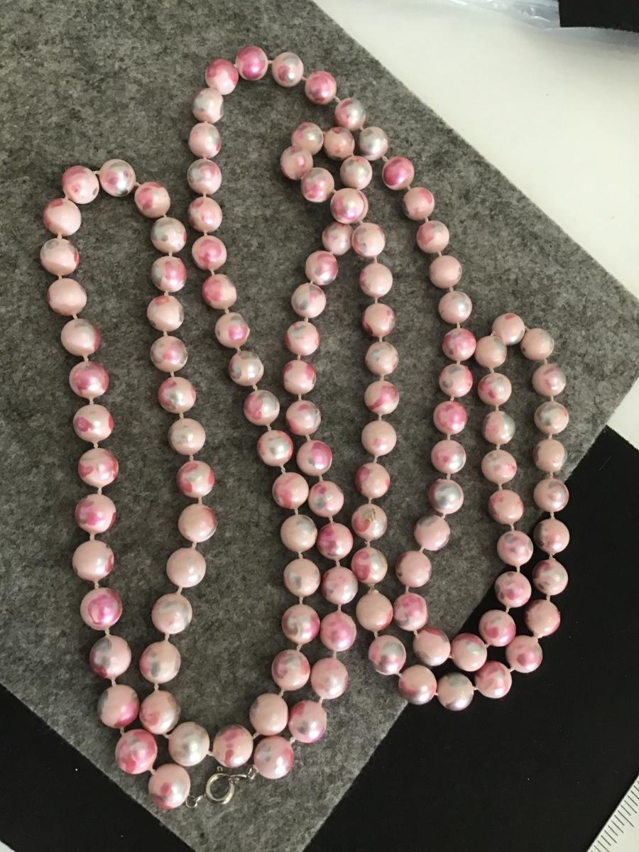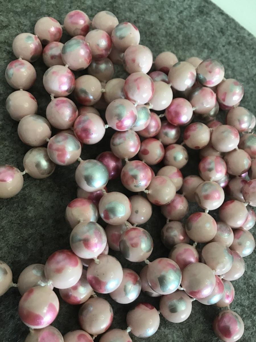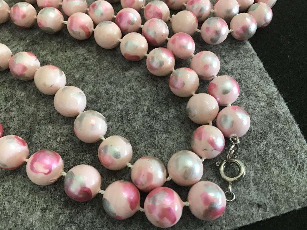 Pink silver dark pink Long Vintage Beaded Necklace