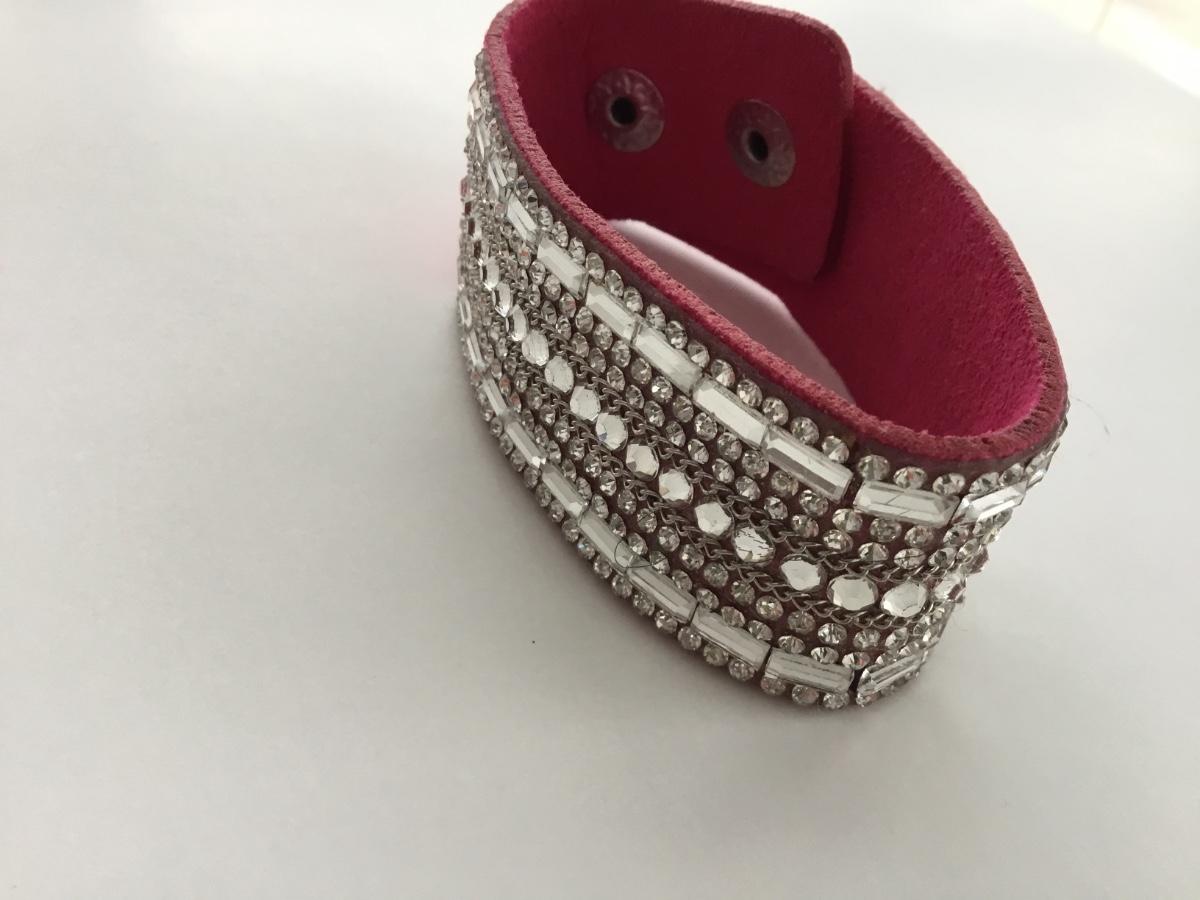 Pink snap on rhinestone fashion bracelet