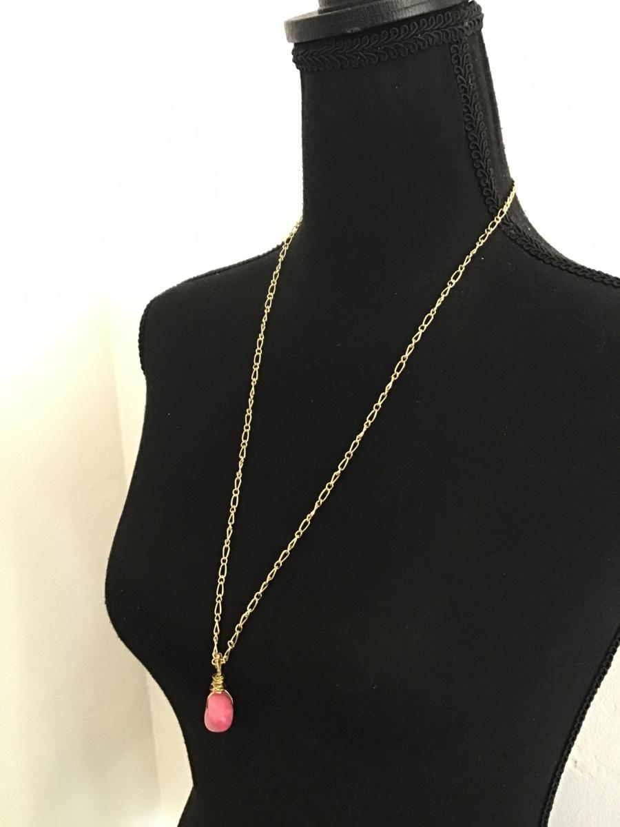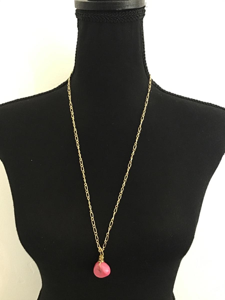 Pink stone toggle gold necklace