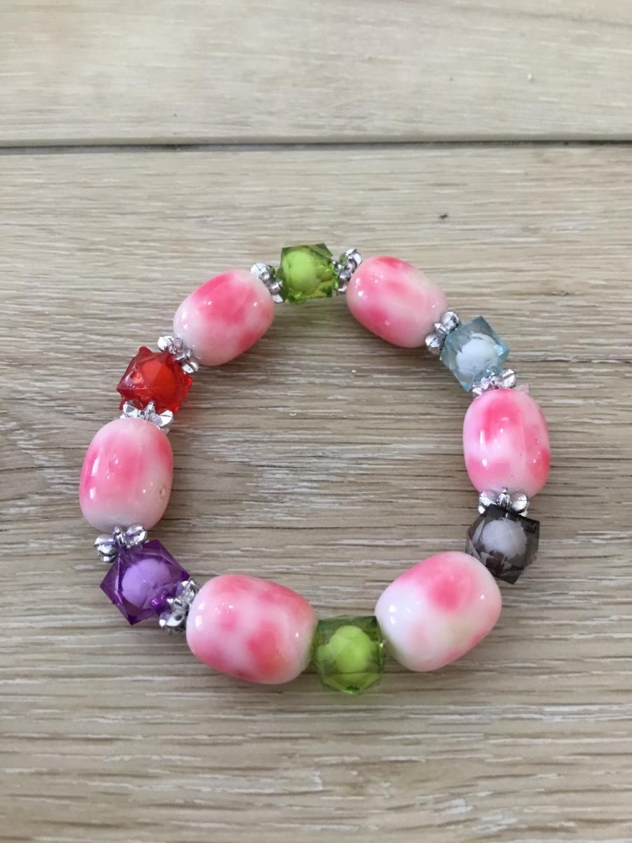 Pink stretchy beaded fashion bracelet