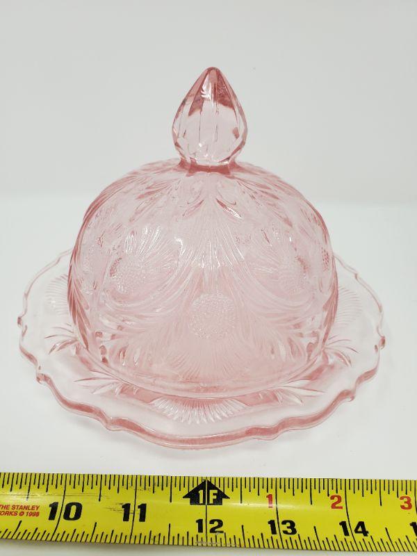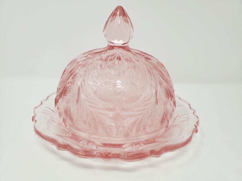PINK THISTLE DESIGN GLASS BUTTER DISH