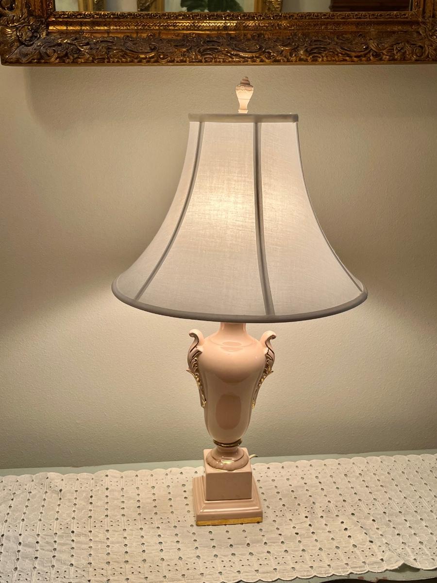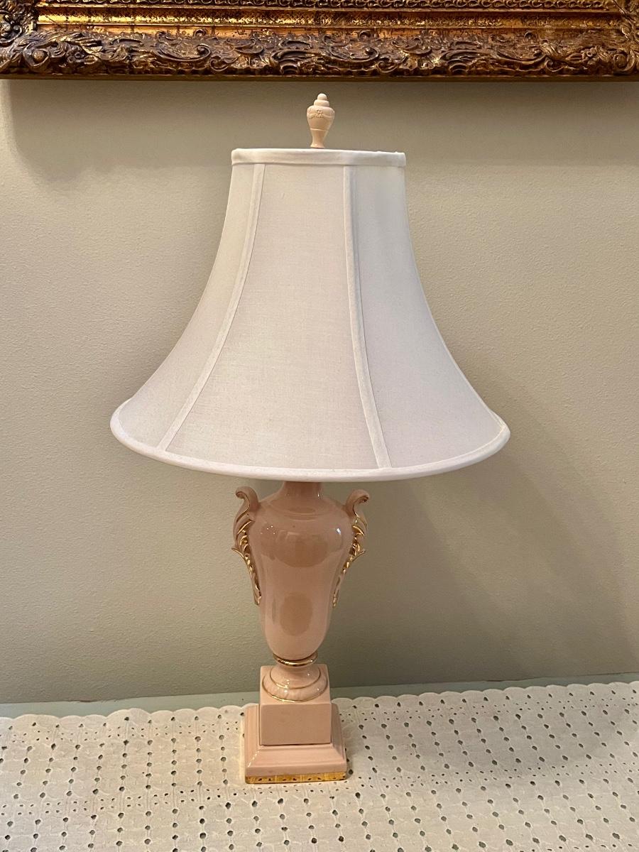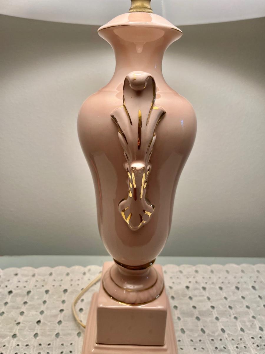 Vintage Pink Ceramic Lamp ~ Gold Trim ~ *Read Details