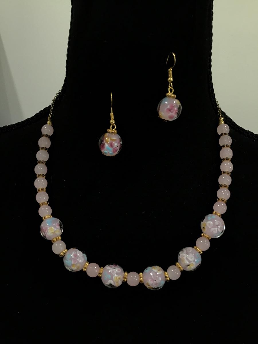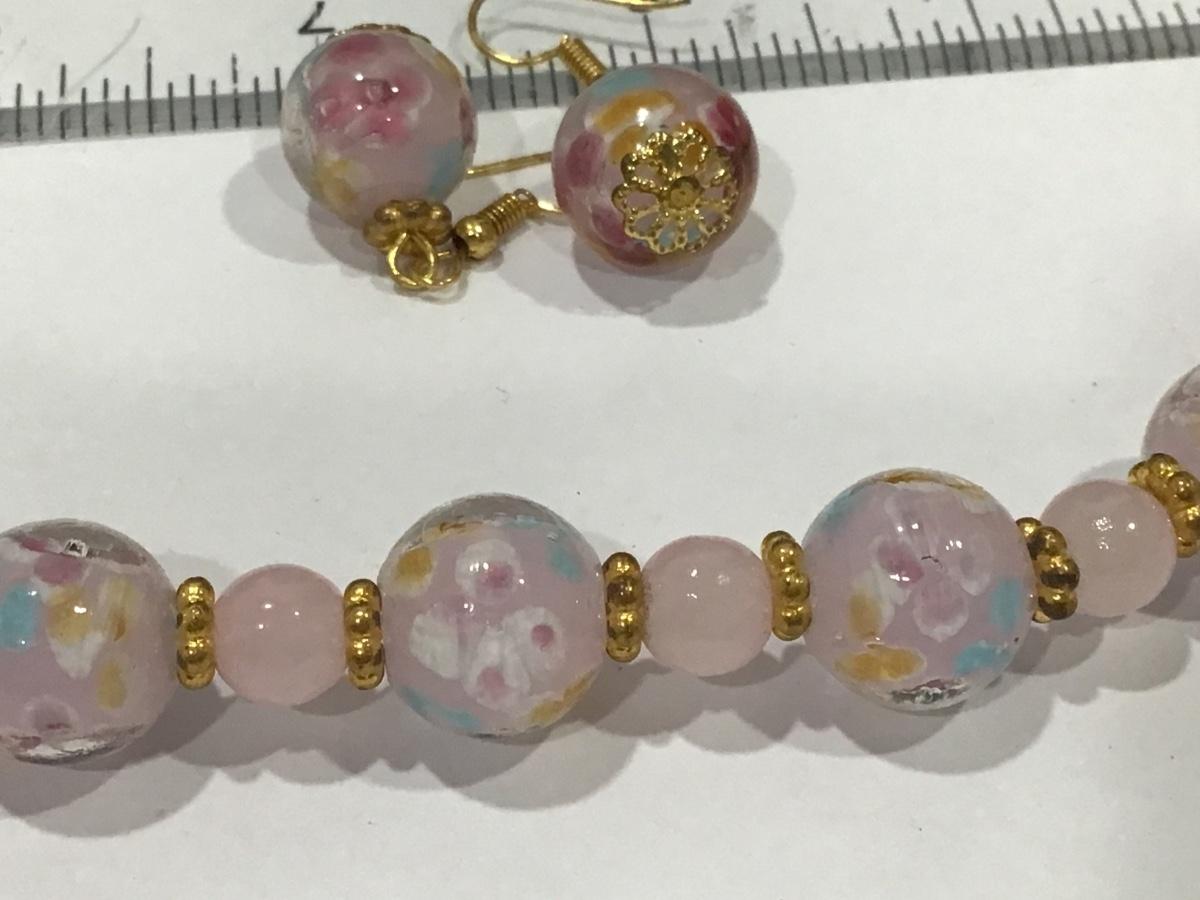 Pink Venetian Glass Gold Tone Spacers with Matching Earrings Style