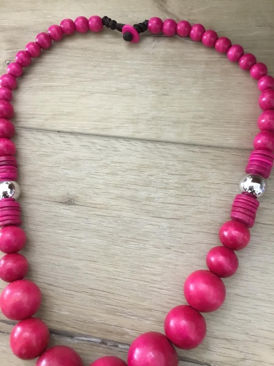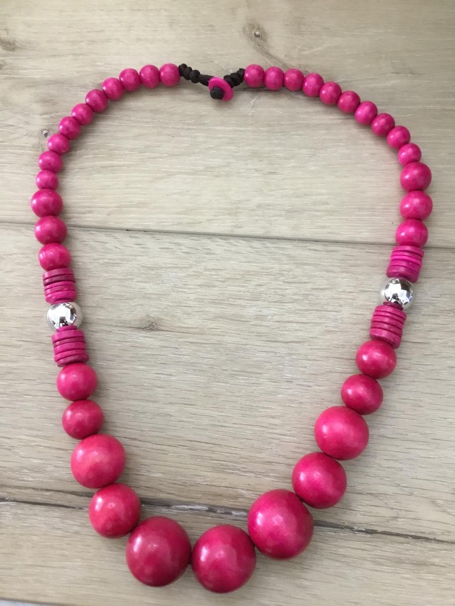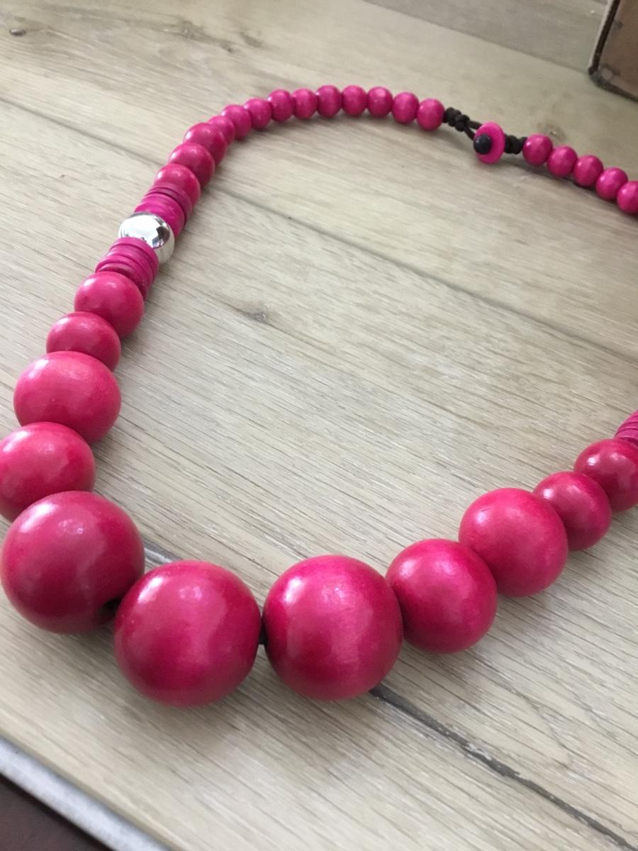 Pink wooden beaded vintage statement necklace