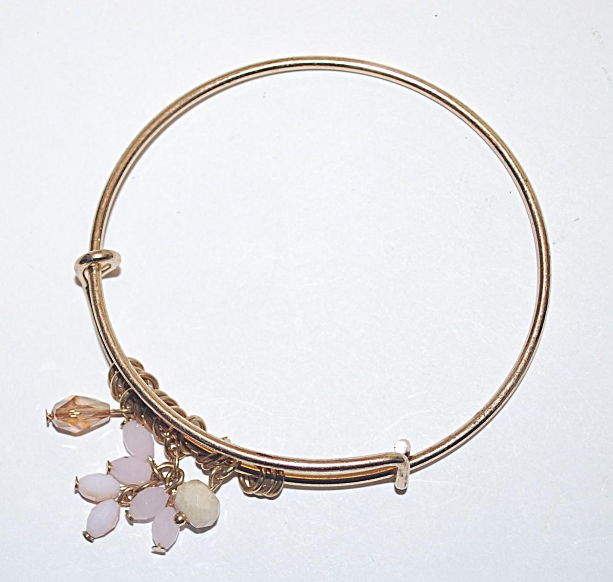 Pinkish Cluster Beads on Gold Tone Single Wire BRACELET (2½" Opening) with Accent Circles
