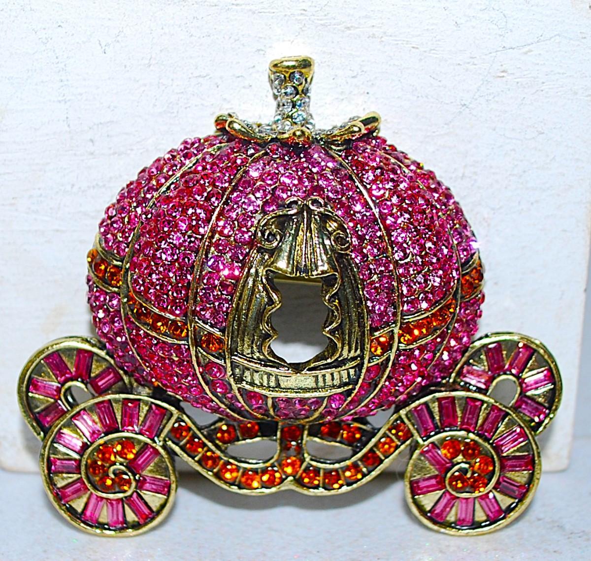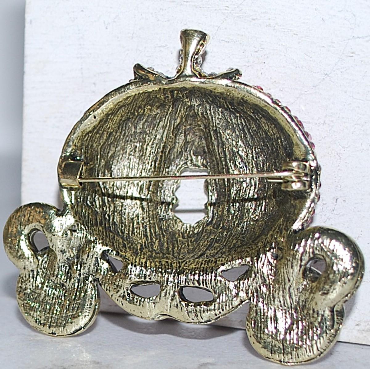 Pinks & Orange Colored "CINDERELLA's CARRIAGE" BROOCH (2¾" x 2½") on a Gold Tone Setting