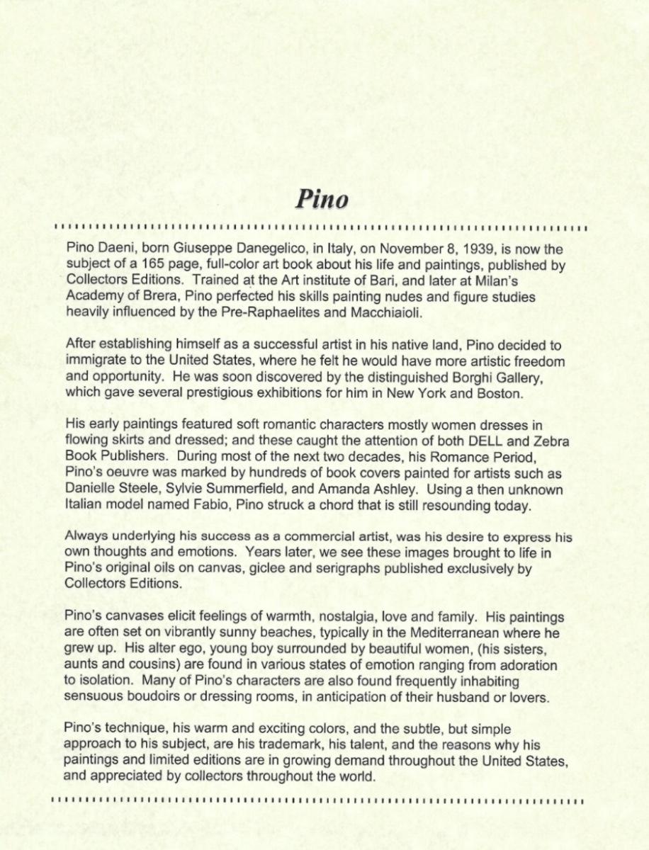 • Signature: Lower right, signed “Pino”