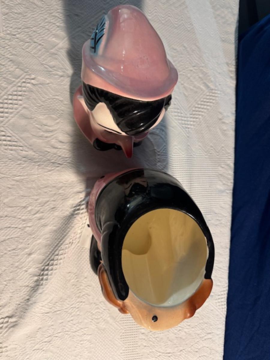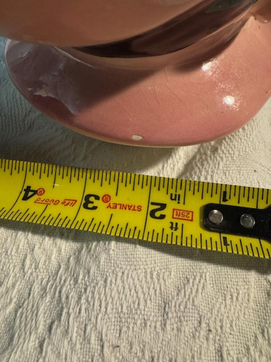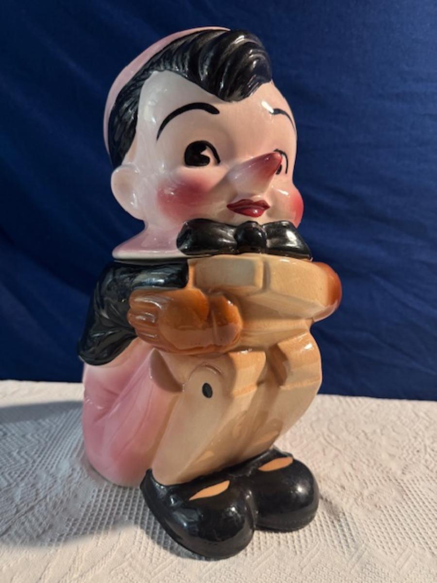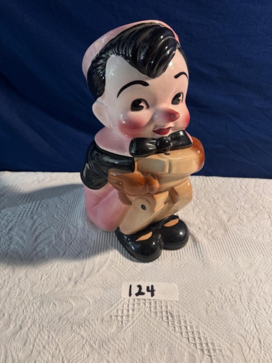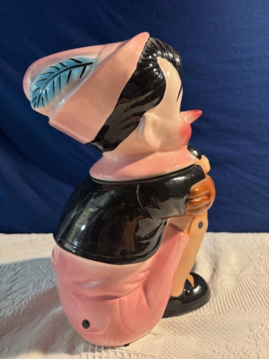 Very cute cookie jar as found. Slight crazing, and a couple of small chips see pics for more details. 8" x 12" x 6"