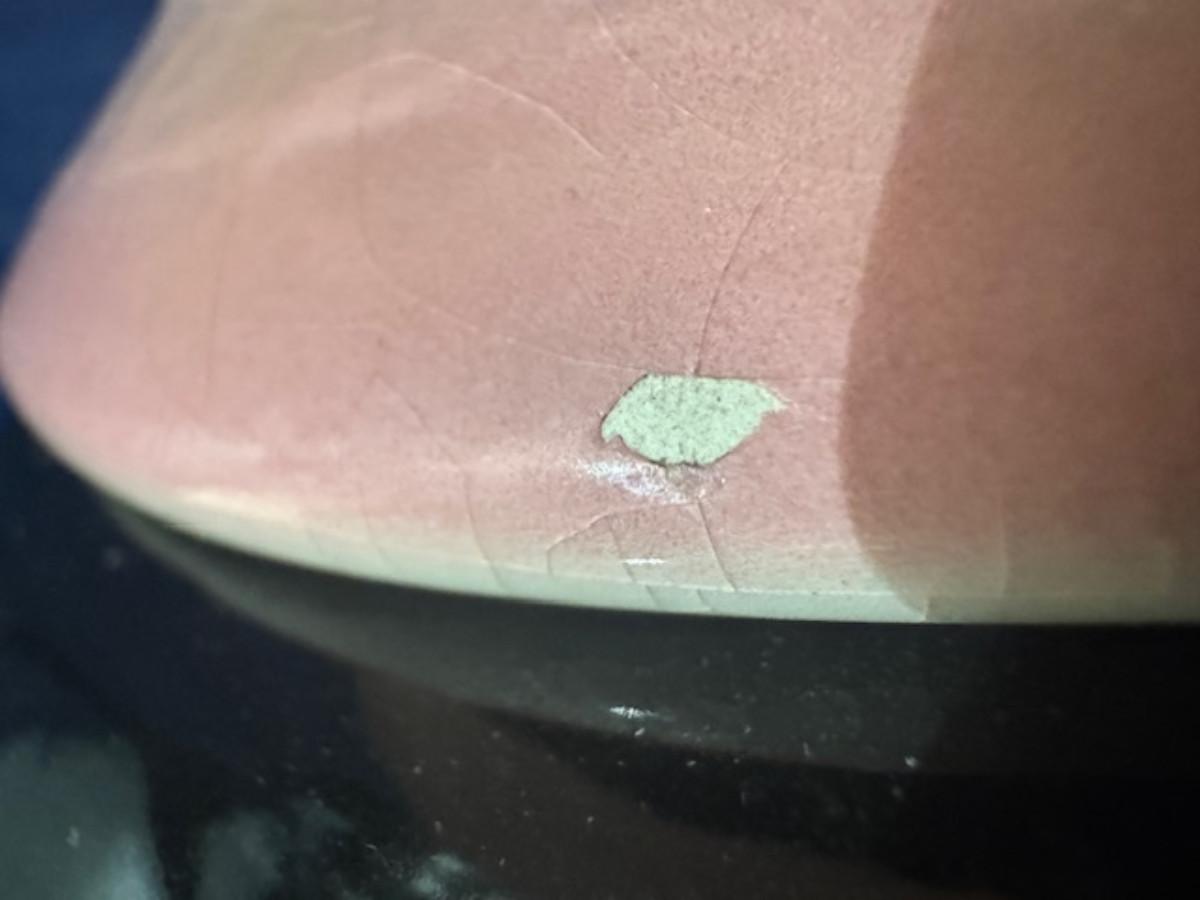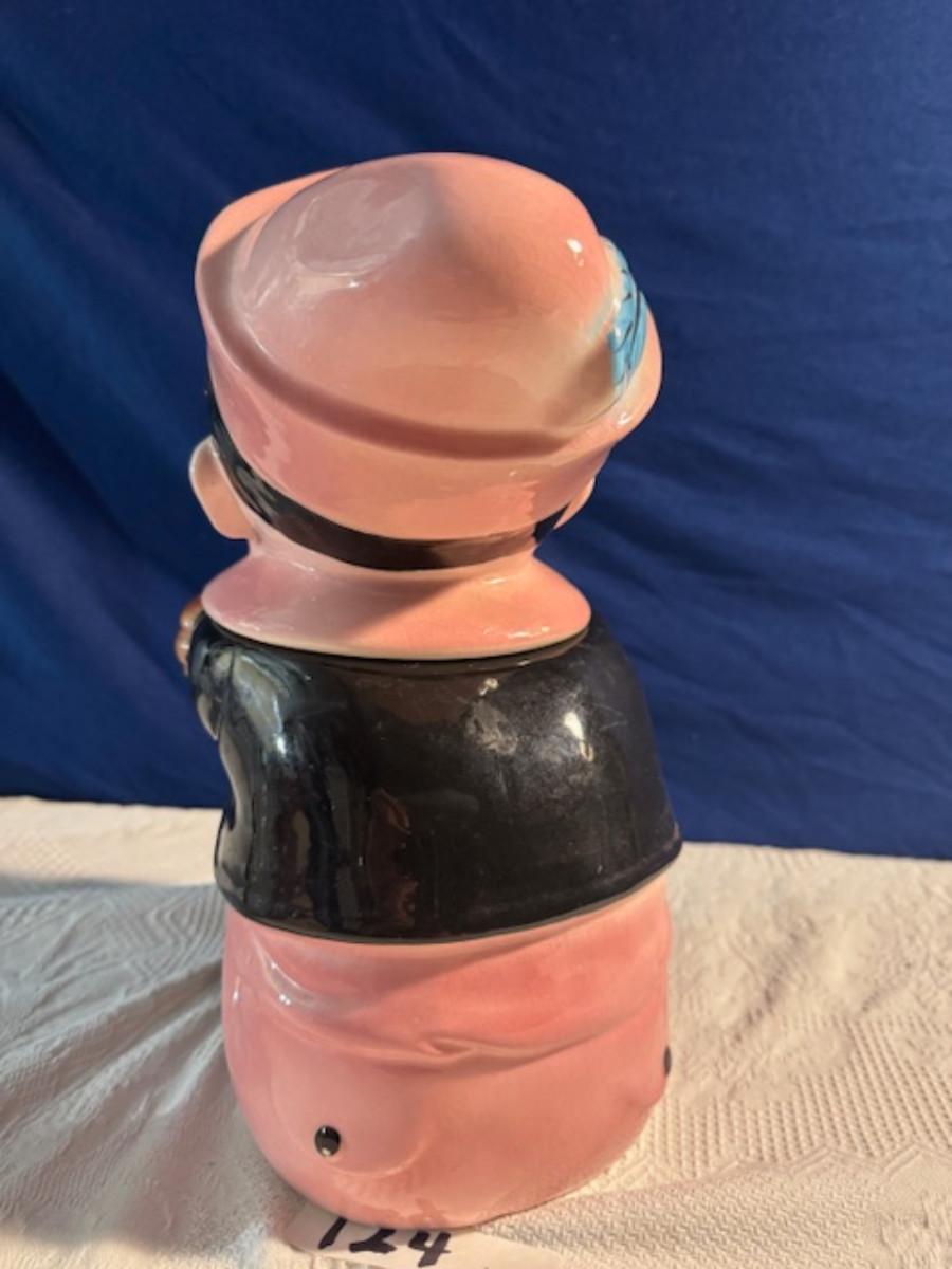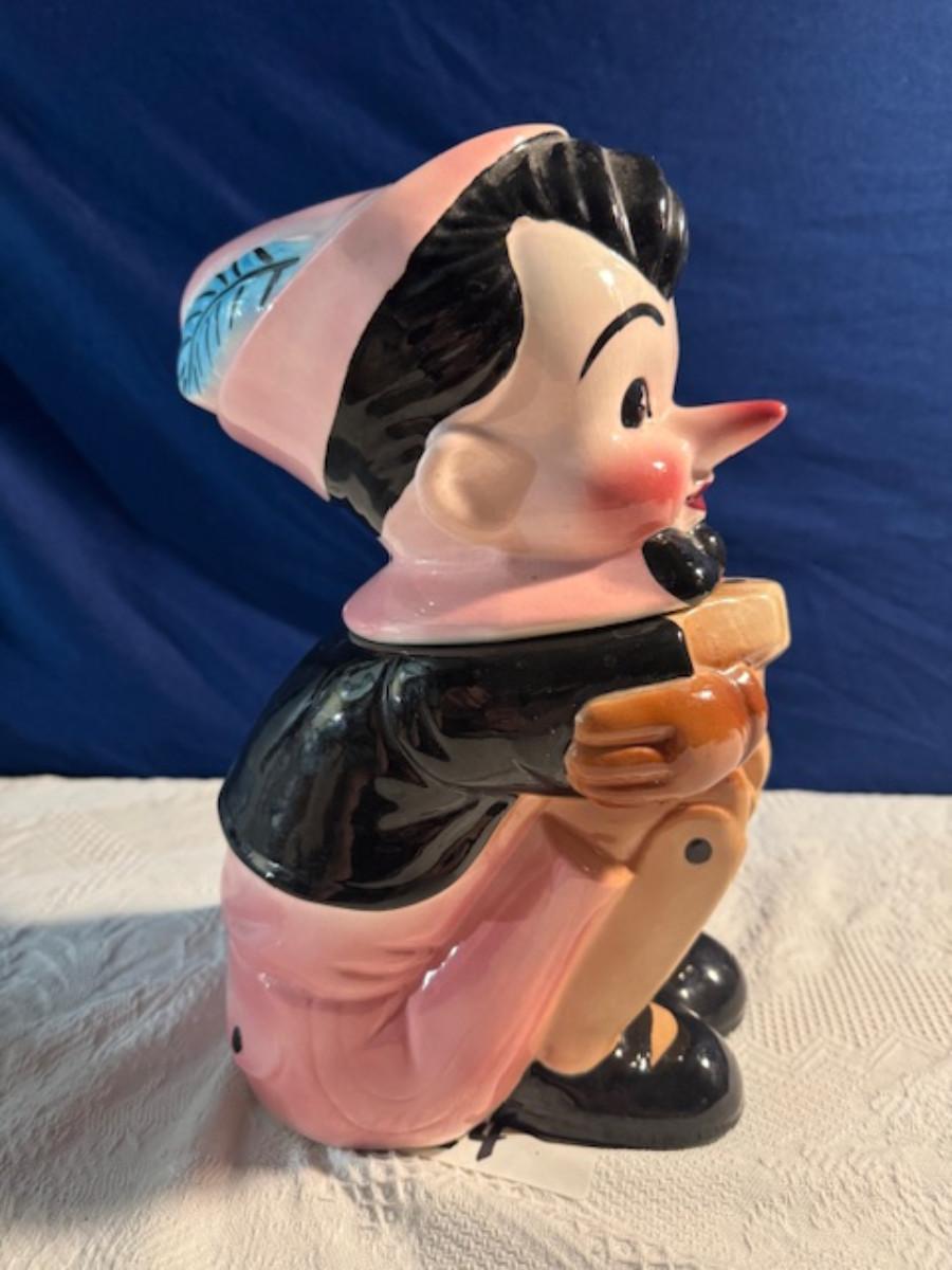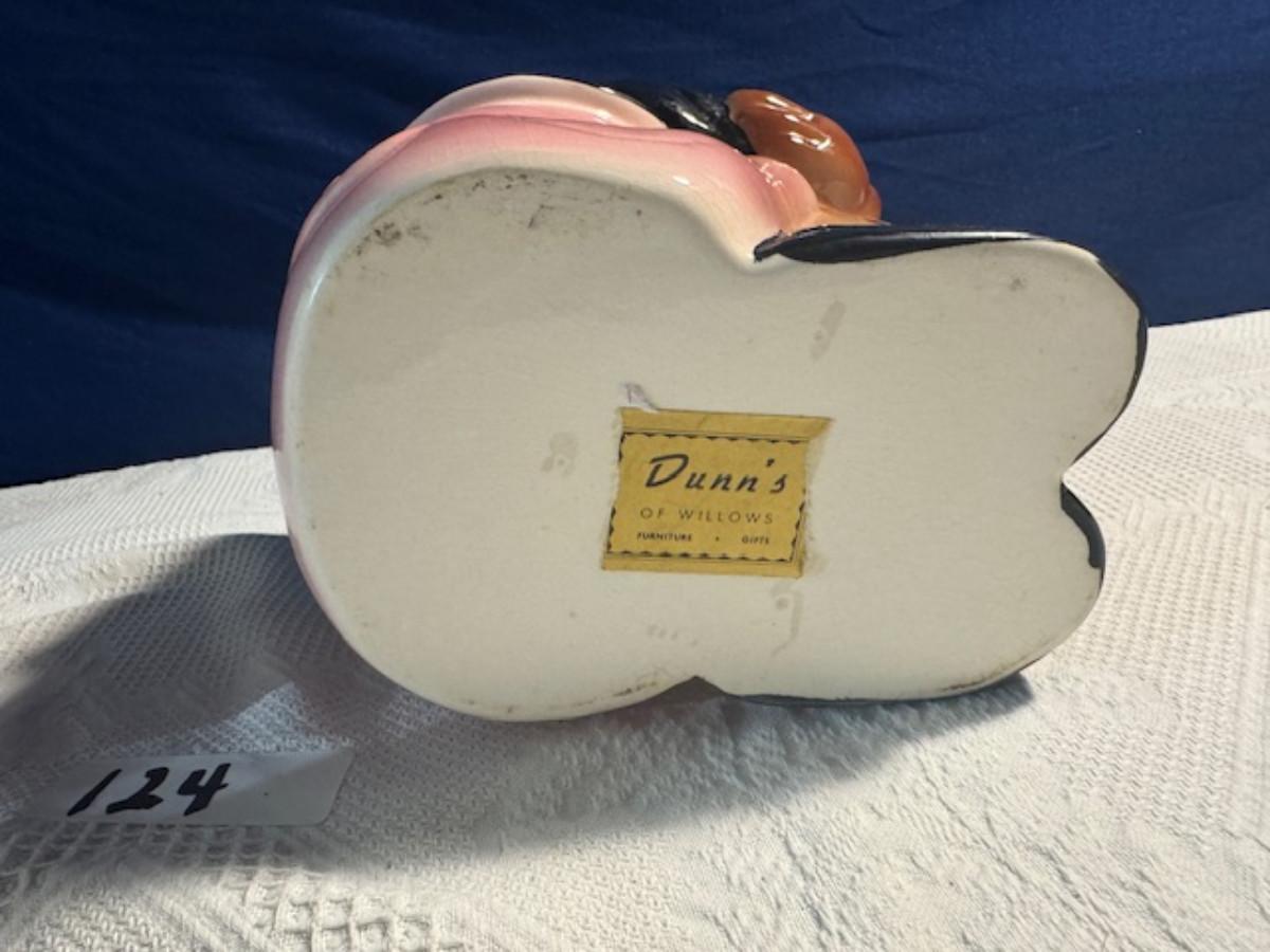 Very cute cookie jar as found. Slight crazing, and a couple of small chips see pics for more details. 8" x 12" x 6"