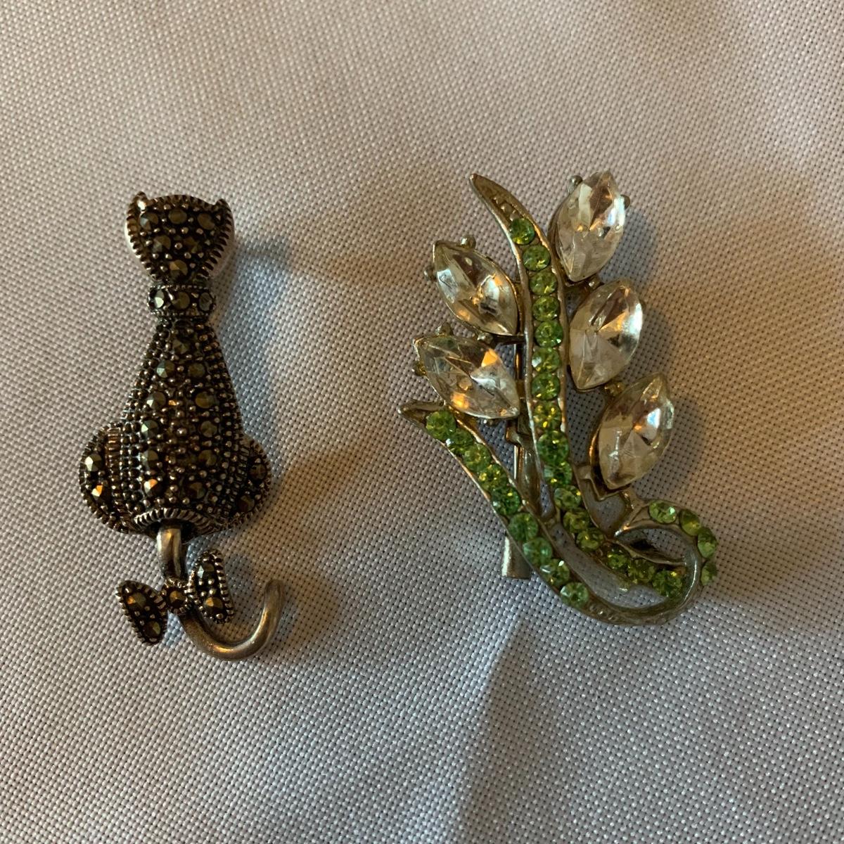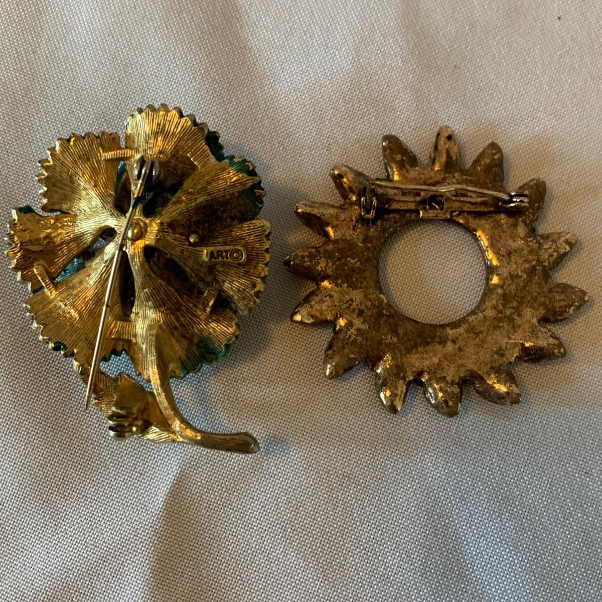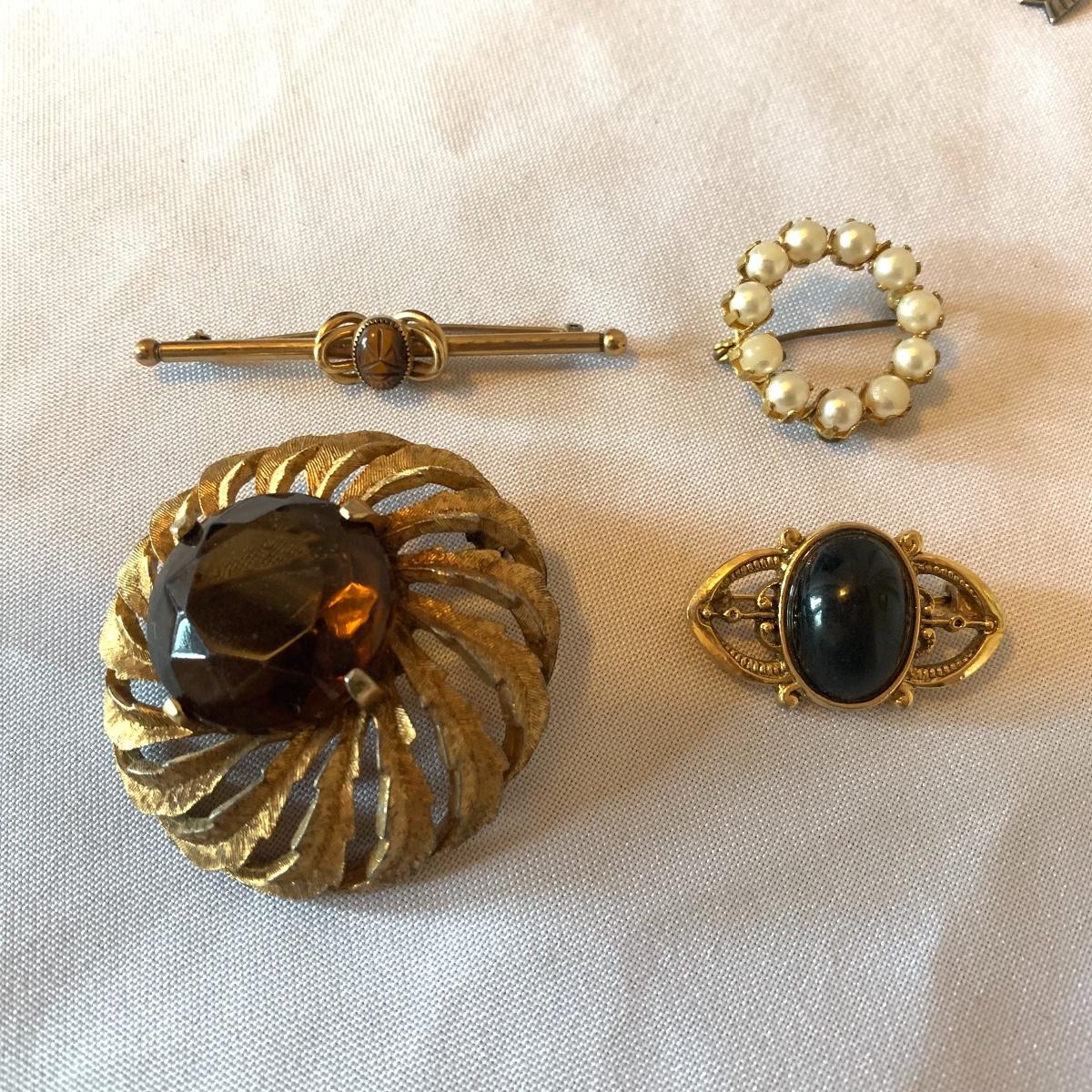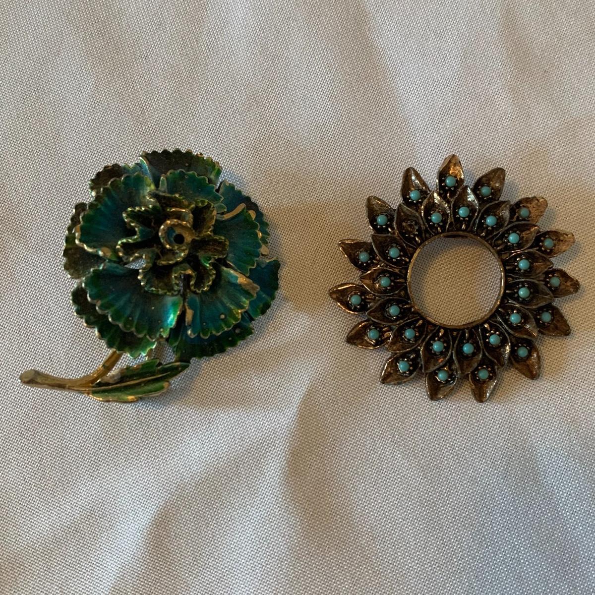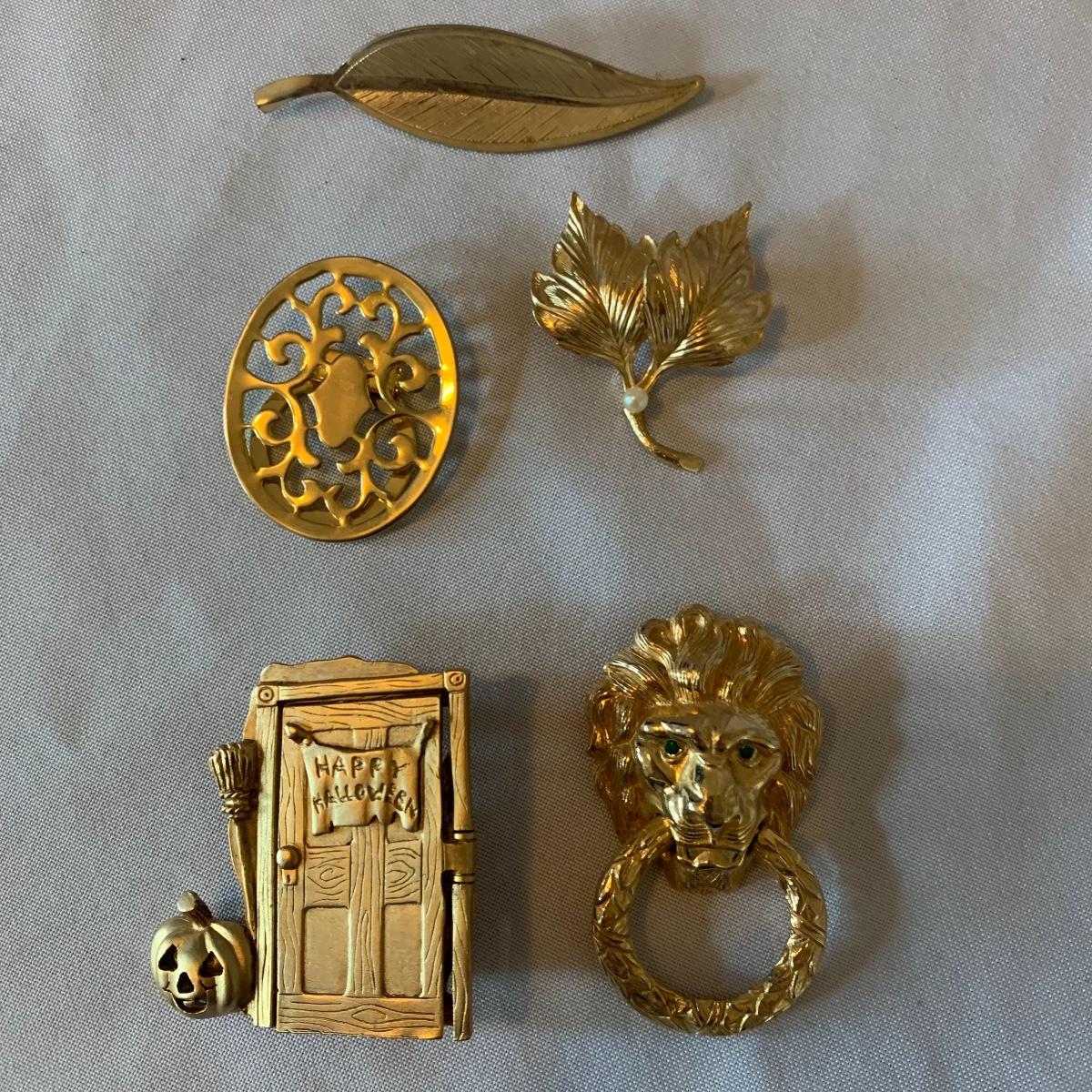 Eighteen pieces in this lot of mostly pins with one gold colored scarf slide. Three Sterling/925 pins (pix together with turtle), a few signed pieces and two 1982 Hallmark pins. Shipping available.