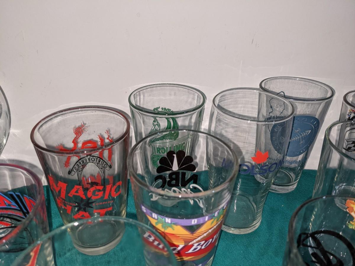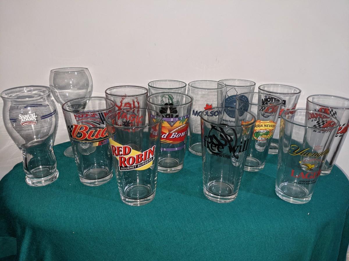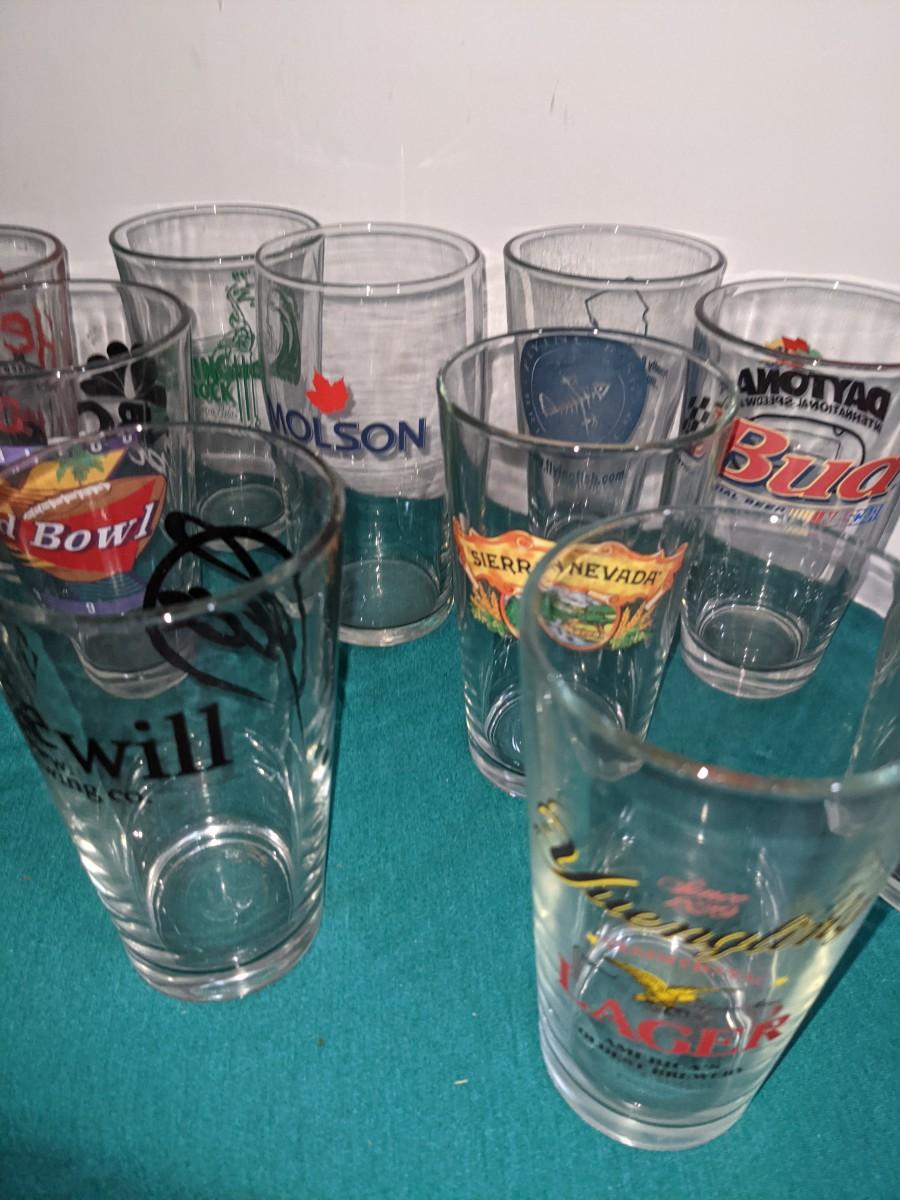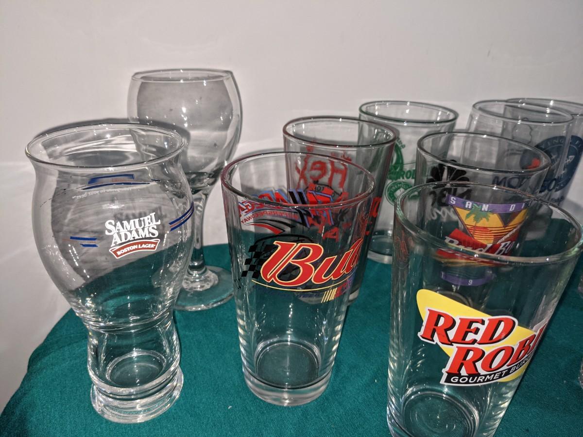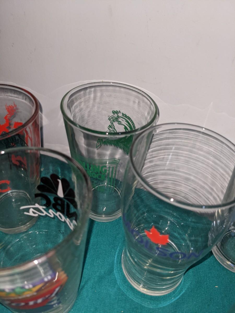 May have been in dishwasher but color still looks good. Some wear especially on the Sam Adams.