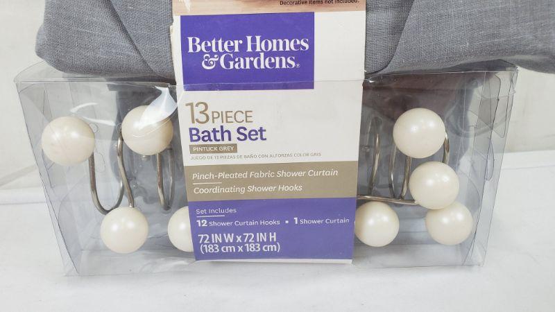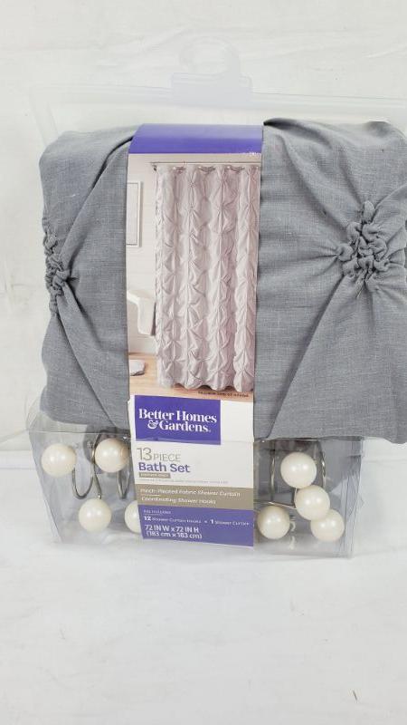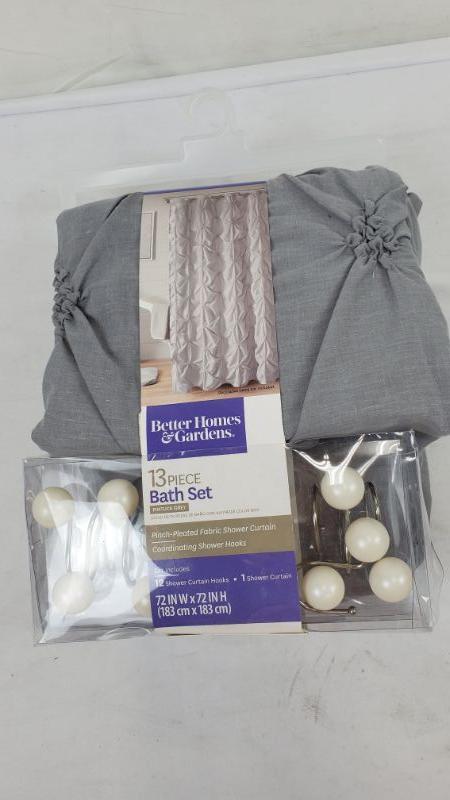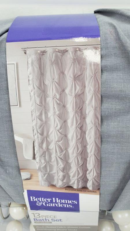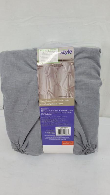 Pintuck Gray Fabric Shower Curtain and 12 Shower Curtain Rods - New