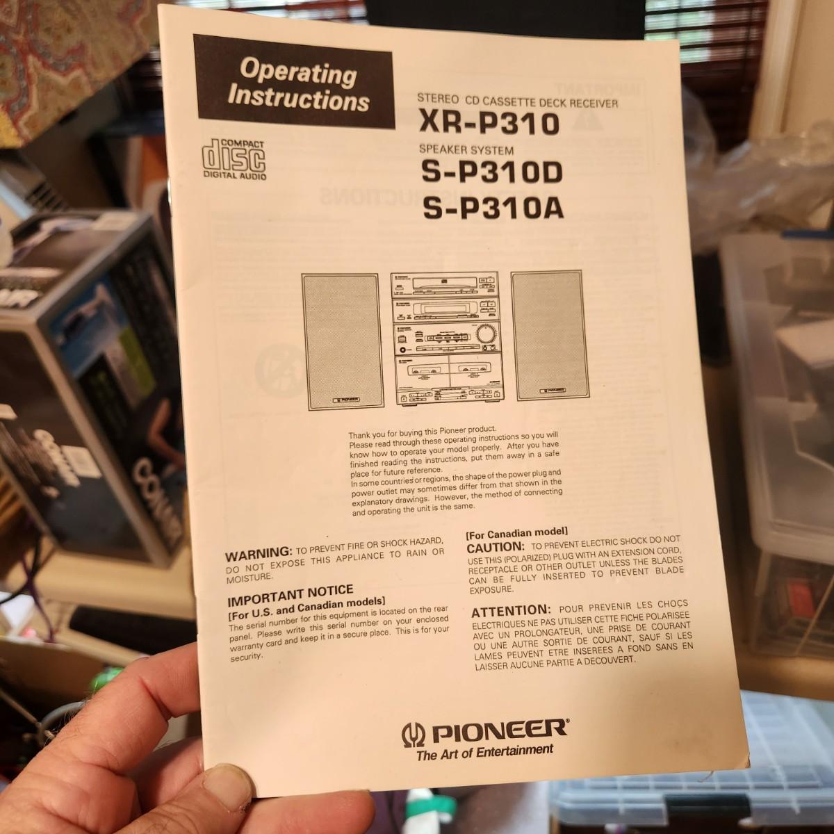 Pioneer Cassette CD AM/FM Receiver and speakers w manual