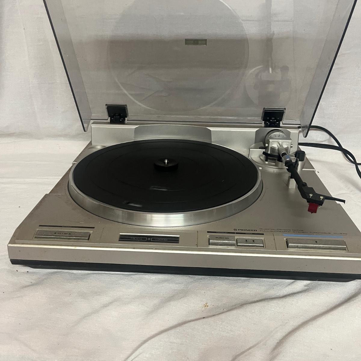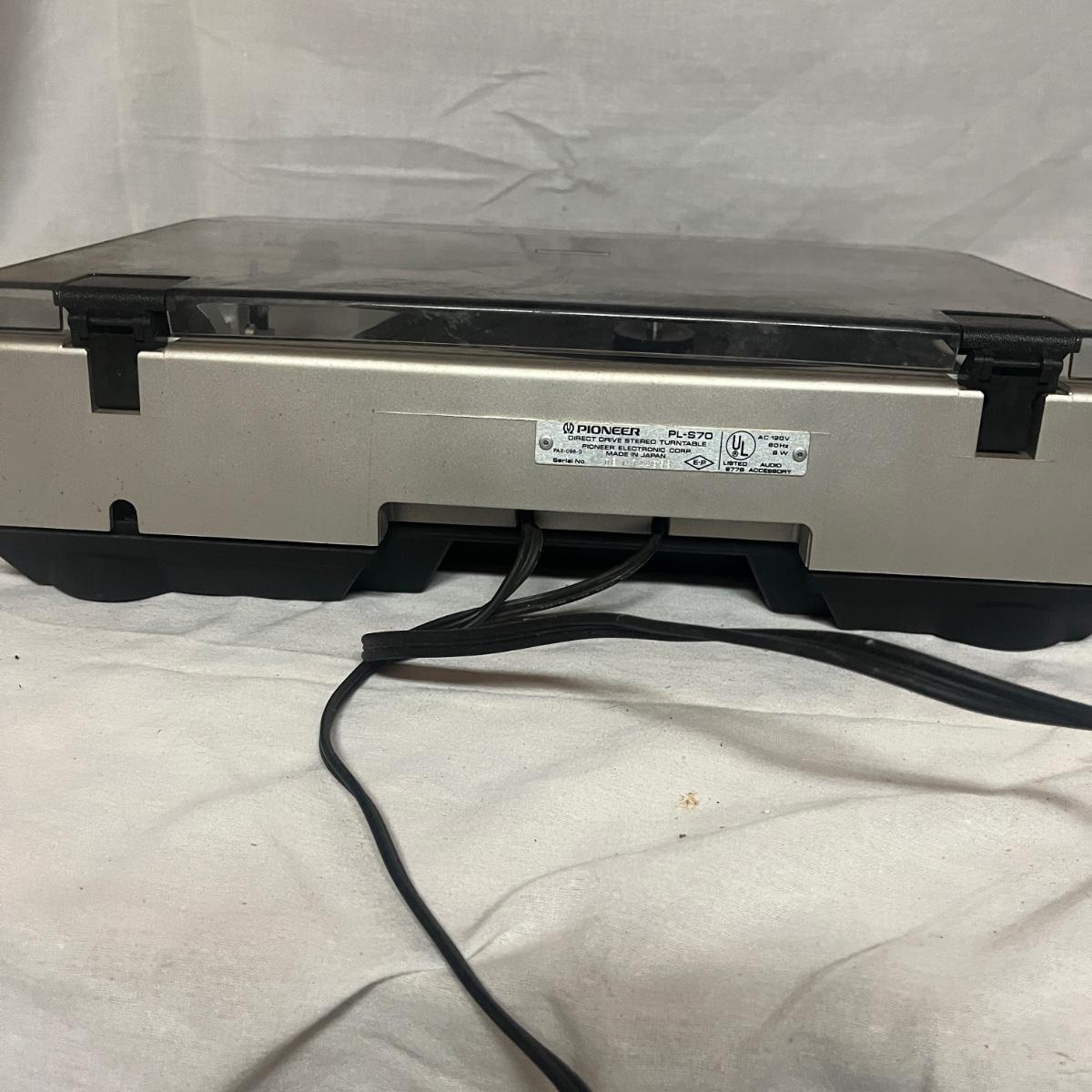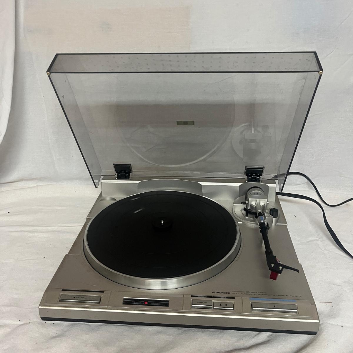 Lot includes a Pioneer PL-S70 full automatic stereo turntable that measures 16.5” x 14.5” x 4.5”H.