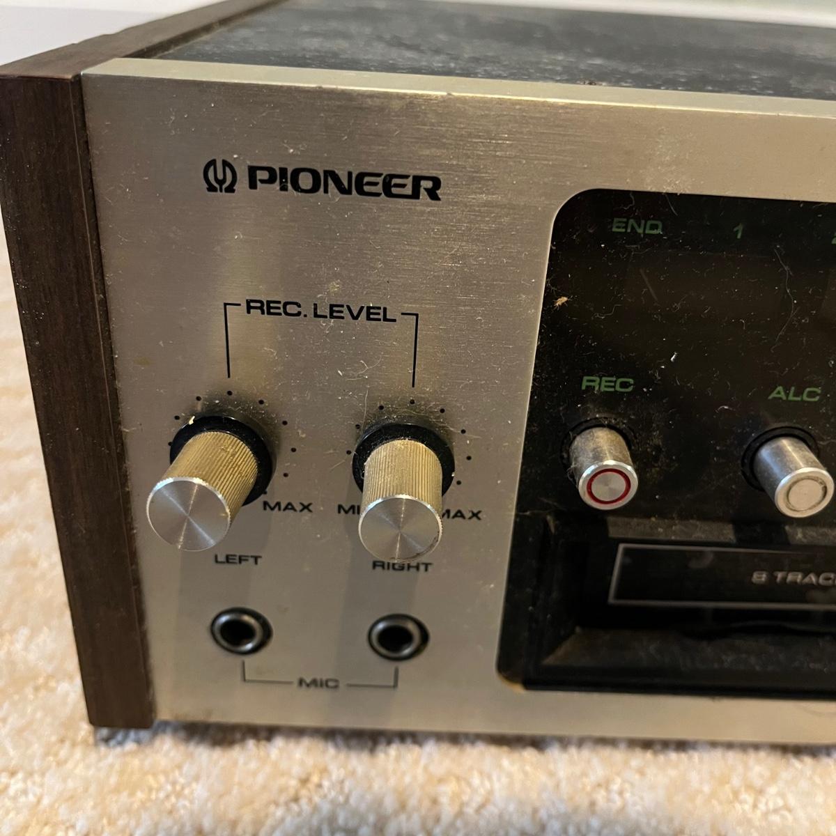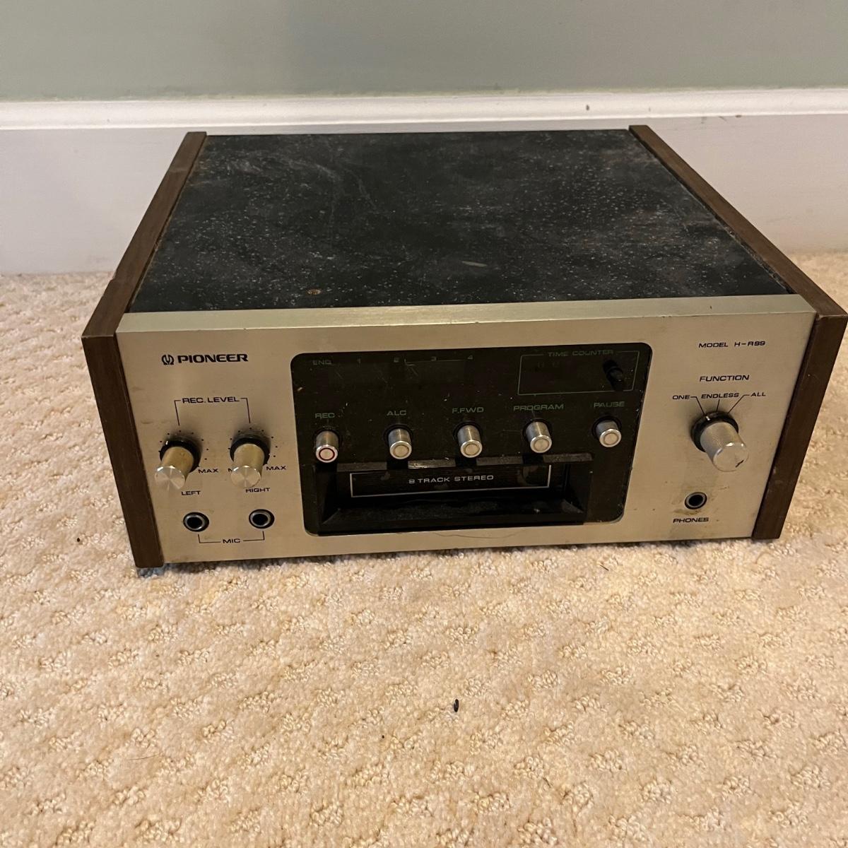 Lot includes a Pioneer 8 track tape player recorder model # H-R99. Machine measures 11” x 11.5” x 5”. Unit did not light up when tested and we had no 8 tracks to test.