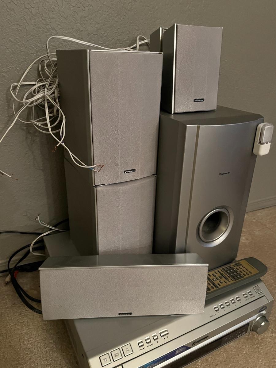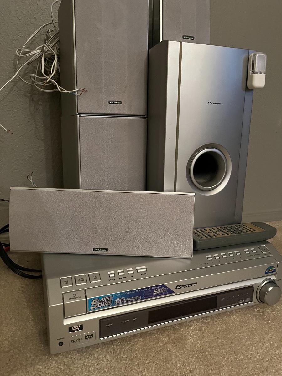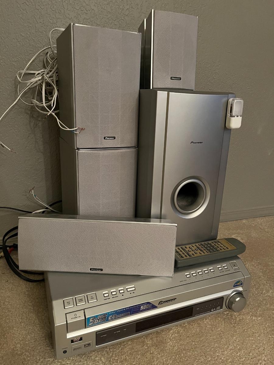 1 Receiver, 1 Subwoofer, 5 speakers, 1 remote, and all the wiring and power supply.