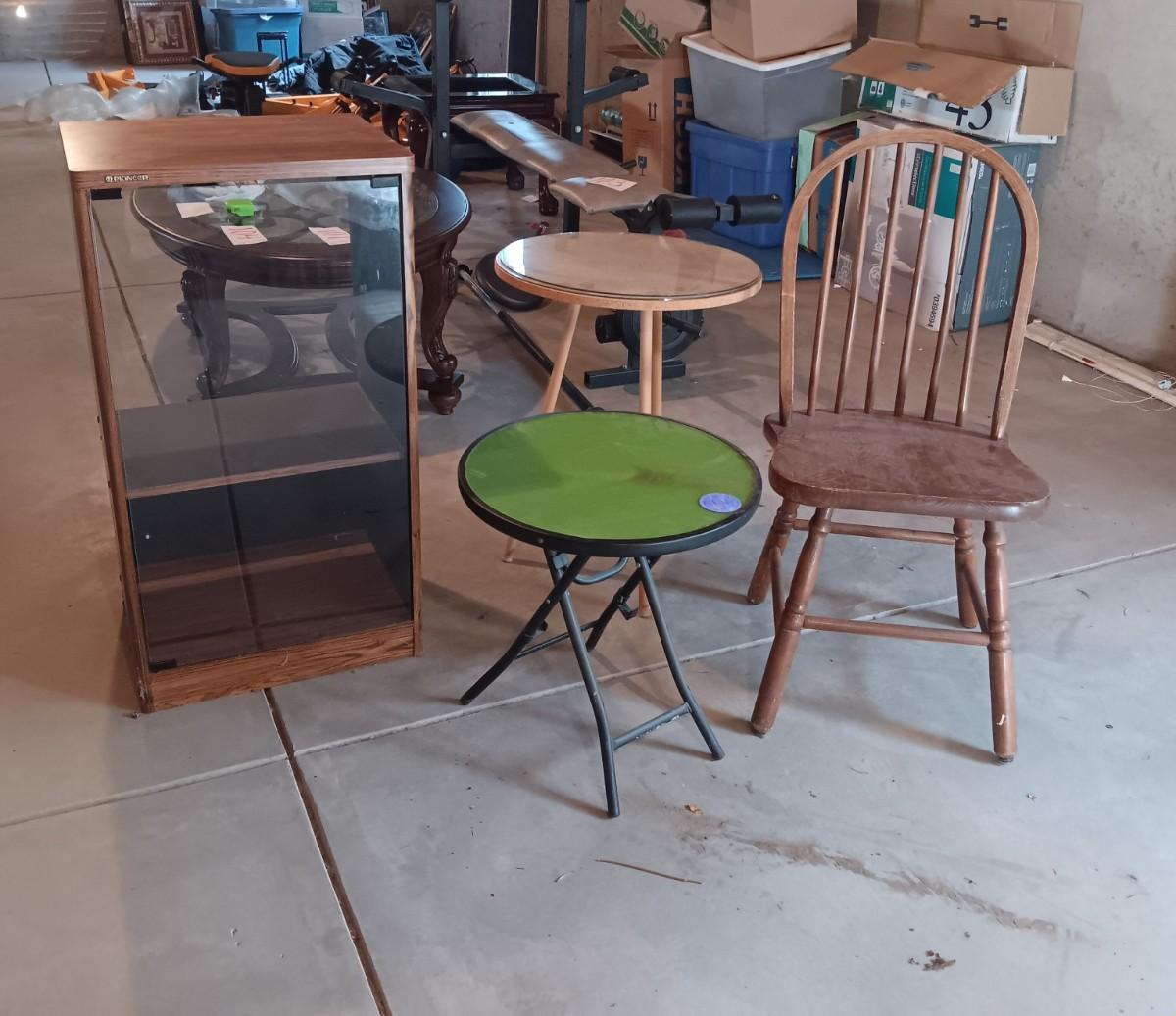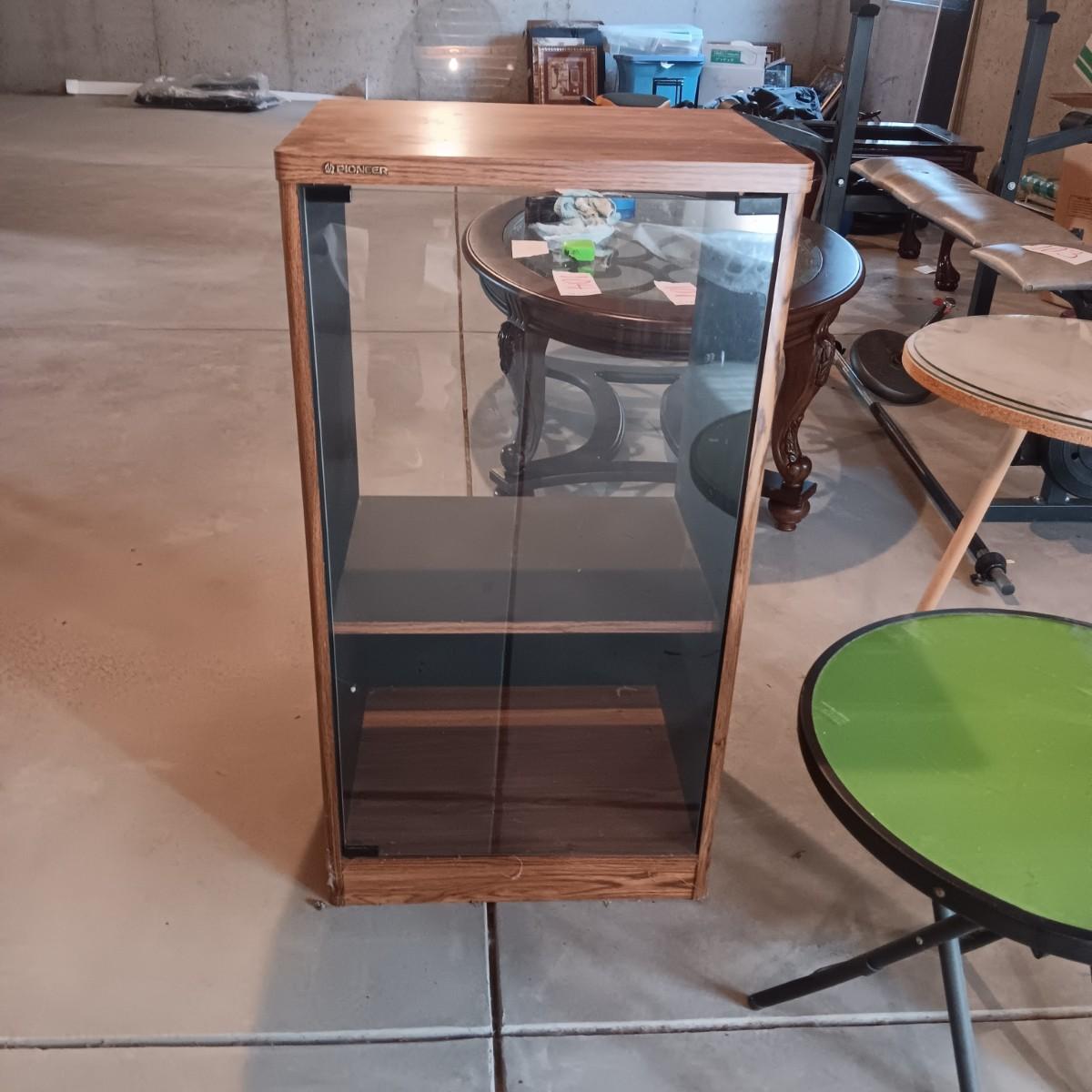 PIONEER STEREO CABINET, 2 ACCENT TABLES AND A WOODEN CHAIR