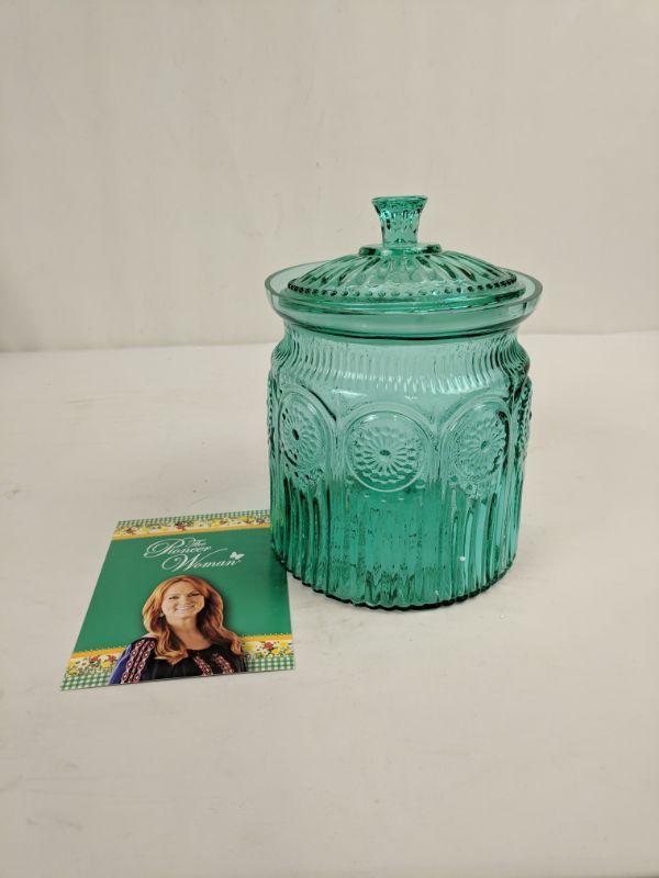 Pioneer Woman Adeline Glass Cookie Jar, Turquoise - New