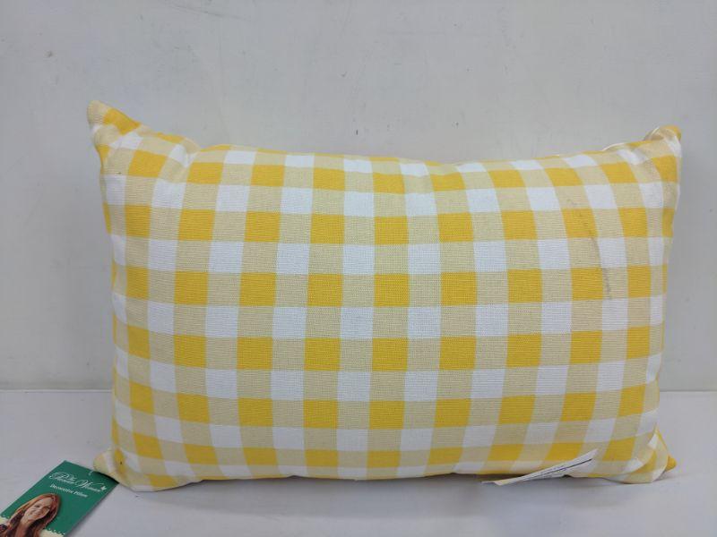 Pioneer Woman Decorative Pillow, Yellow Check/Flowers, 12" x 18" - New