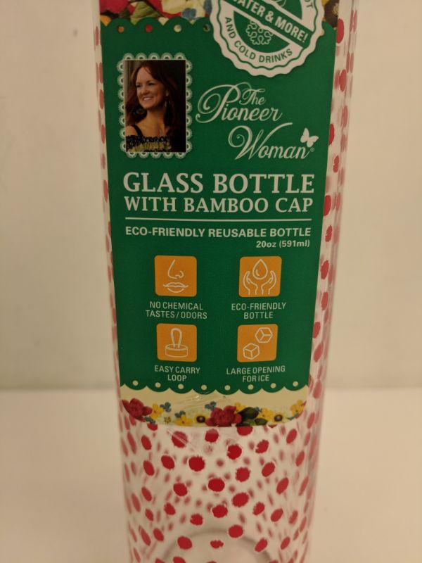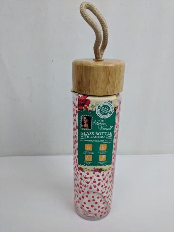 Pioneer Woman Glass Bottle W/ Bamboo Cap - New