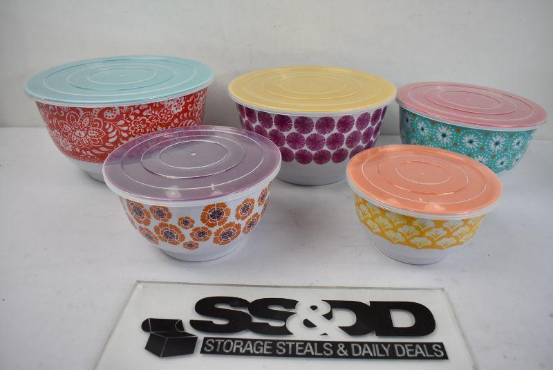 The Pioneer Woman Traveling Vines Melamine Mixing Bowl Set, 10-Piece Set. 2 bowls & 1 lid are cracked