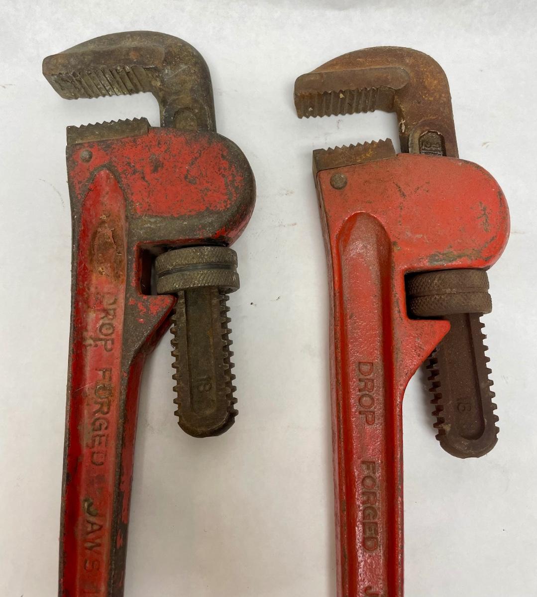 (2) 18" drop forged pipe wrenches. Used but in very good condition.