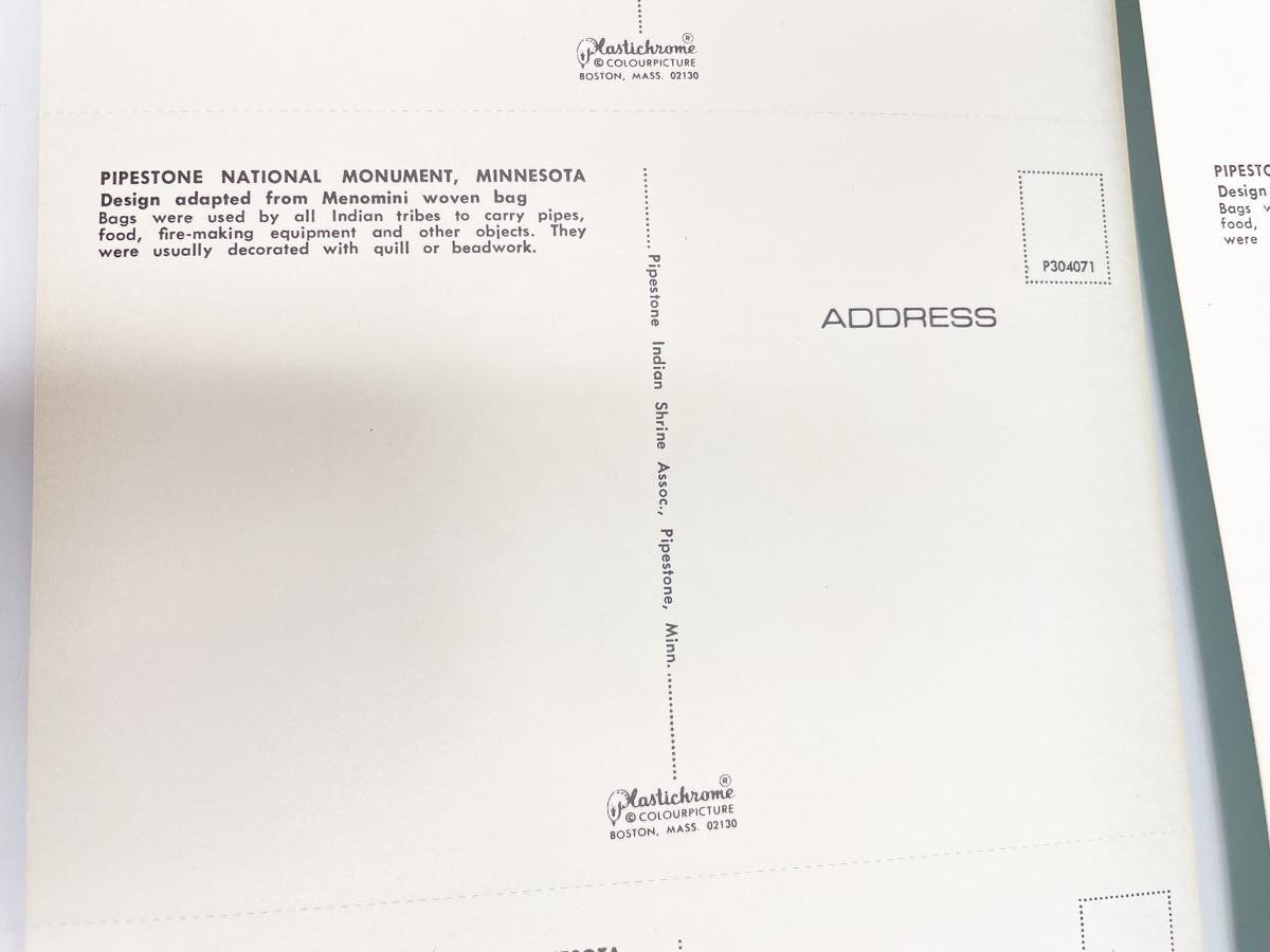PIPESTONE NATIONAL MONUMENT, MINNESOTA POSTCARDS - NATIVE AMERICAN DESIGNS (12)