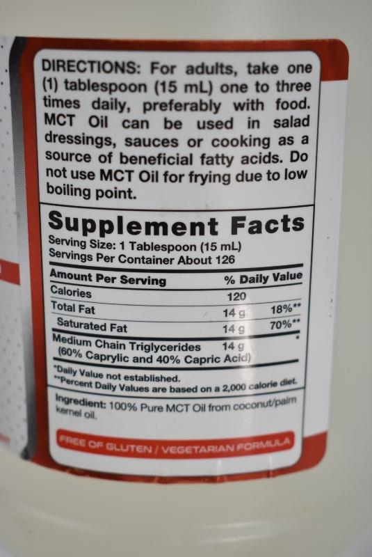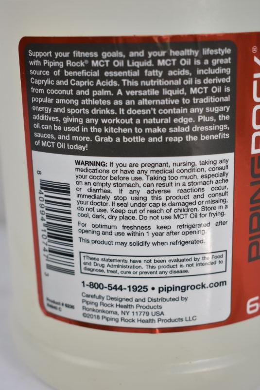 Piping Rock 100% Pure MCT Oil Dietary Supplement, 64 oz, Retail $28 - New