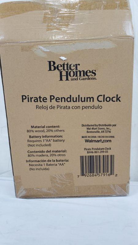 Pirate Pendulum Clock, Better Homes & Gardens, Dimensions: 8" x 1.25" x 11.375" - New