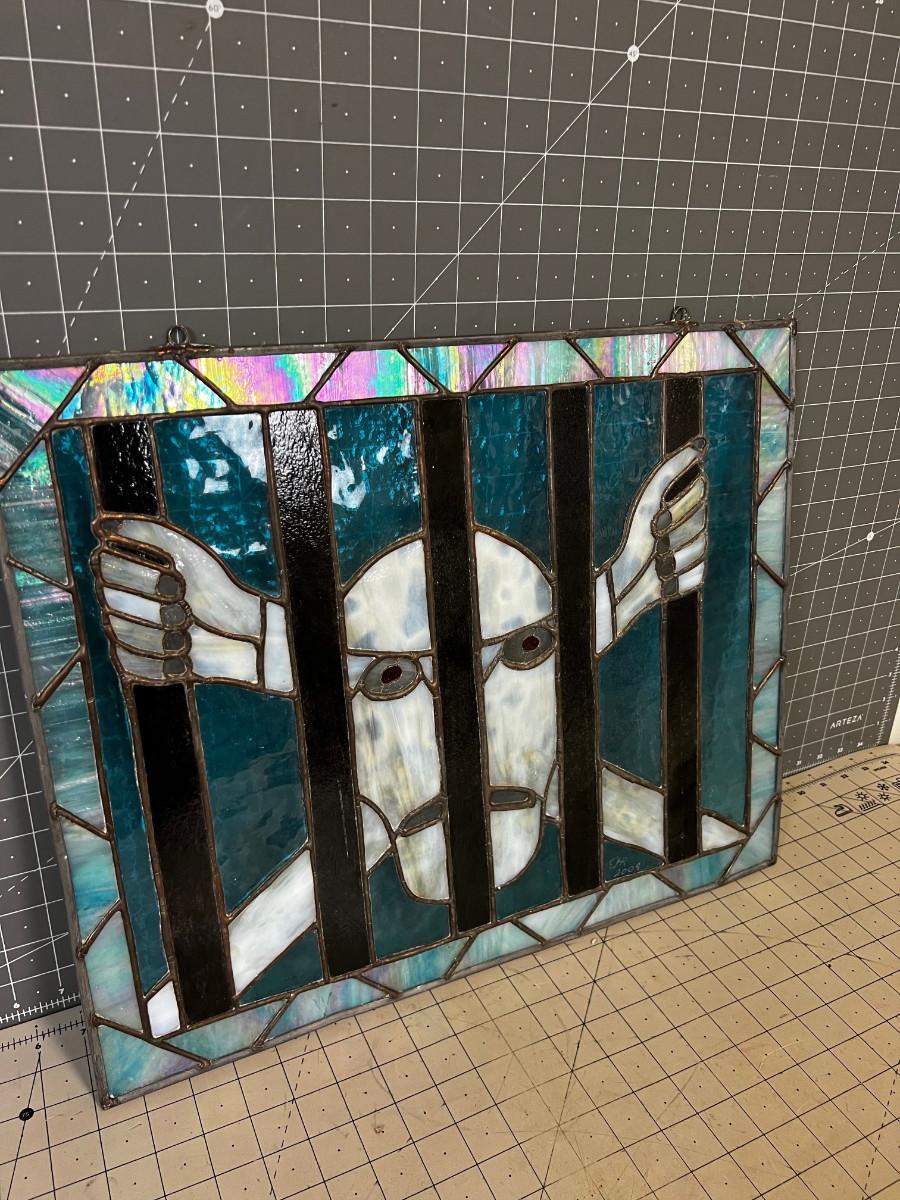 Measures 20" X 16" Stainglass Hand Crafted.