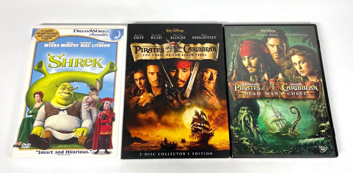 Pirates of the Caribbean and Shrek DVDs lot
