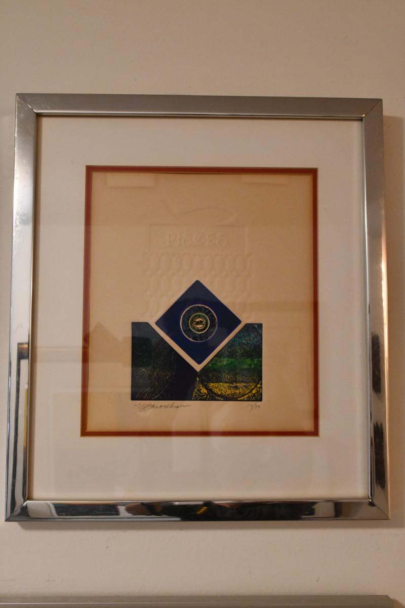 16/50. Frame is 15.25 x 17. Art is 9.5 x 11.
