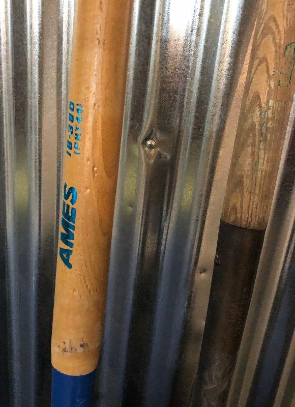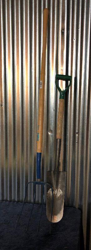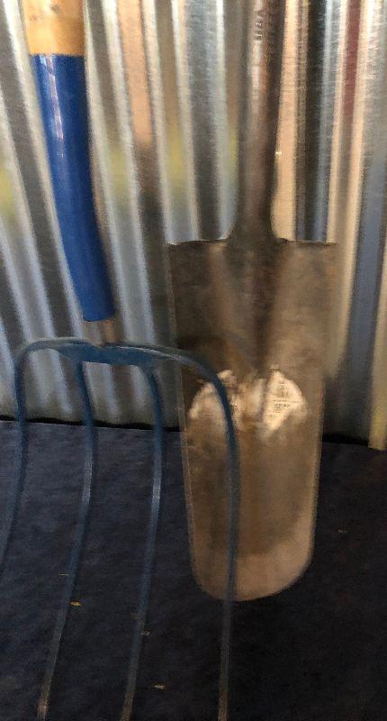 Light use if any on this Ames pitchfork and a tree planting shovel...as shown...Wood shafts...