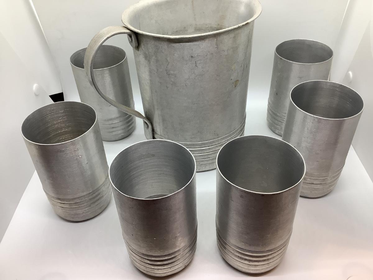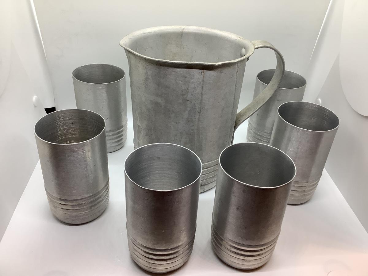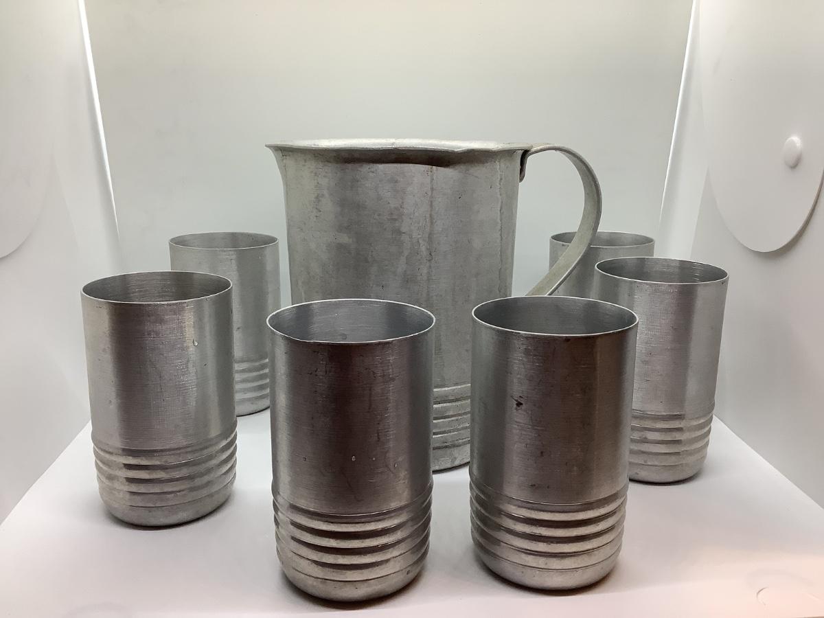 Pitcher and 6 cups- light metal