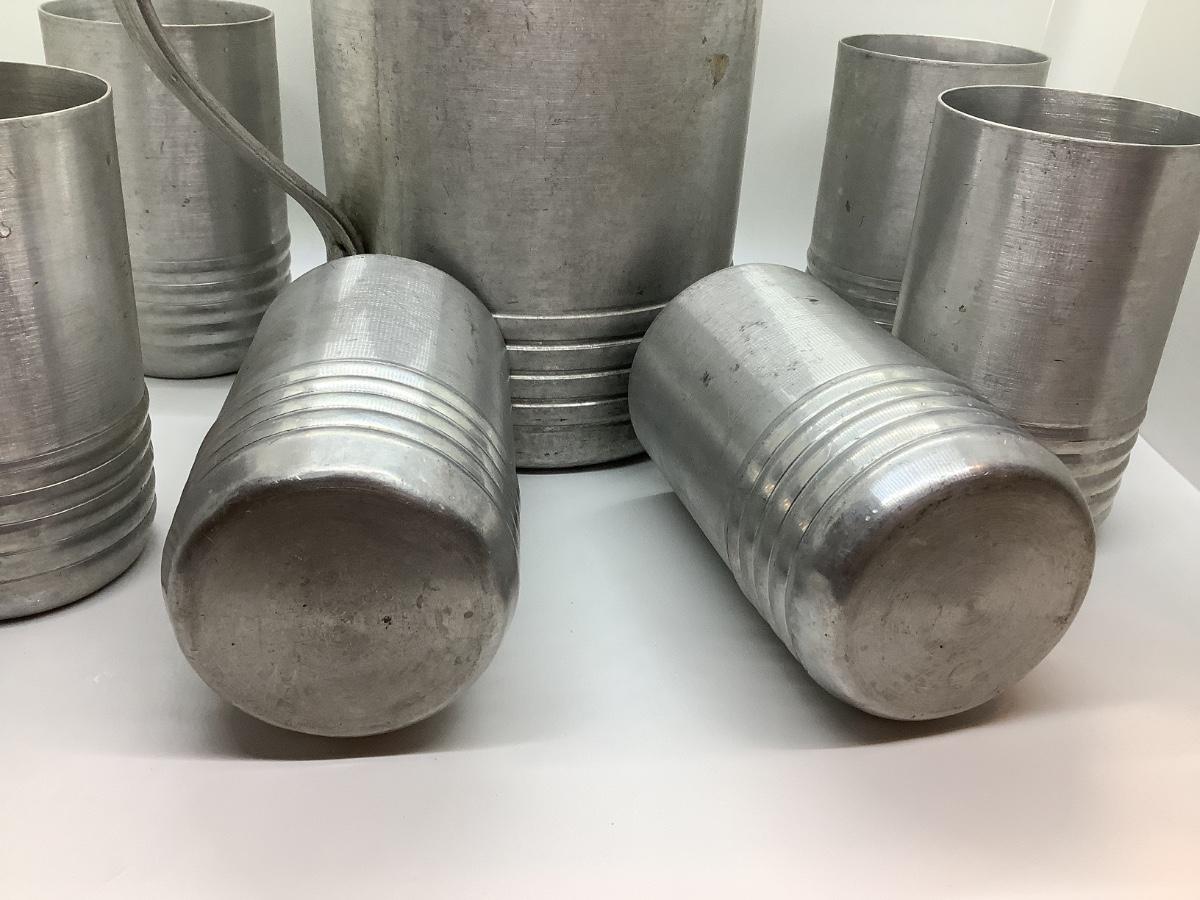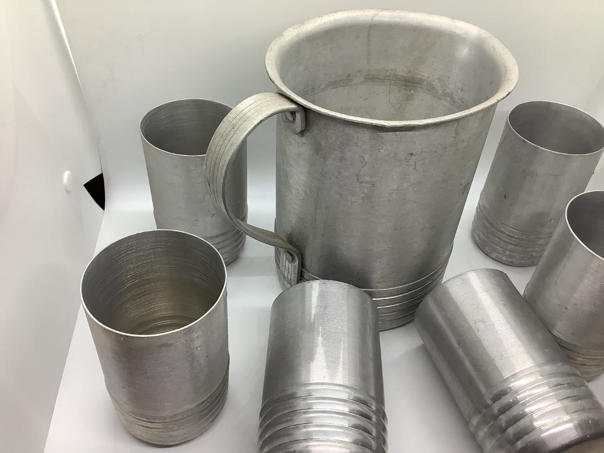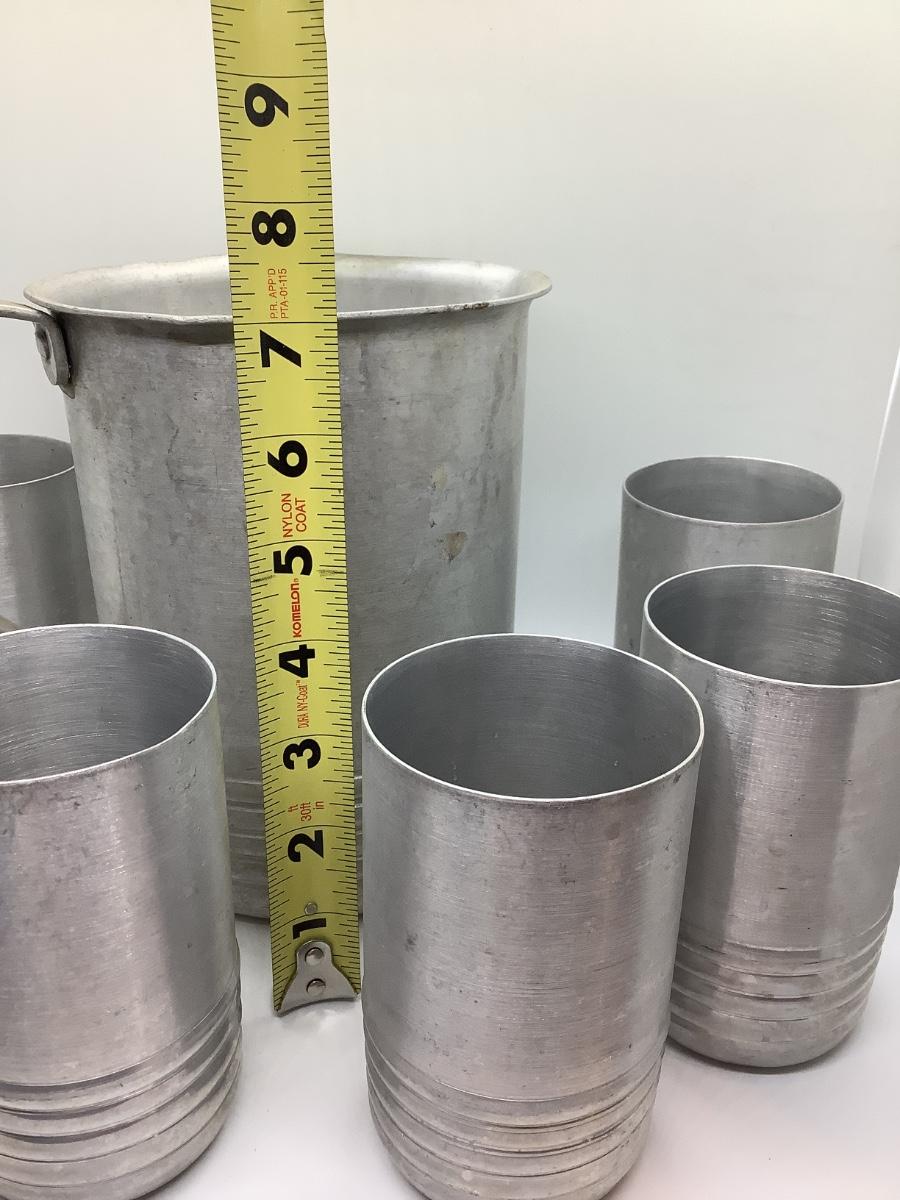 Pitcher and 6 cups- light metal Possibly aluminum