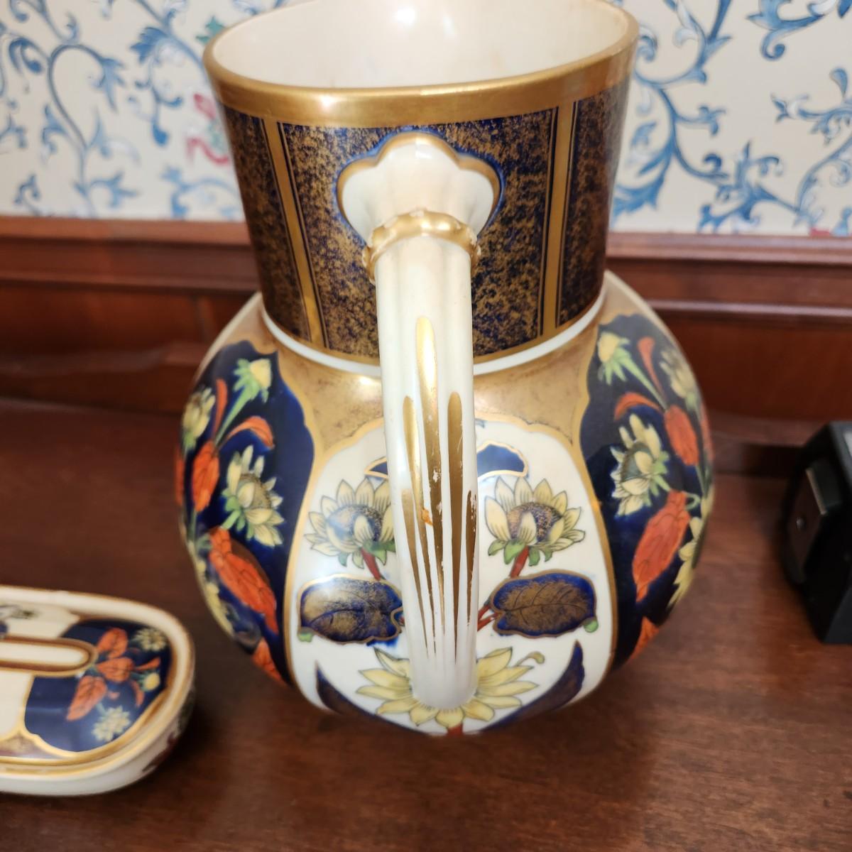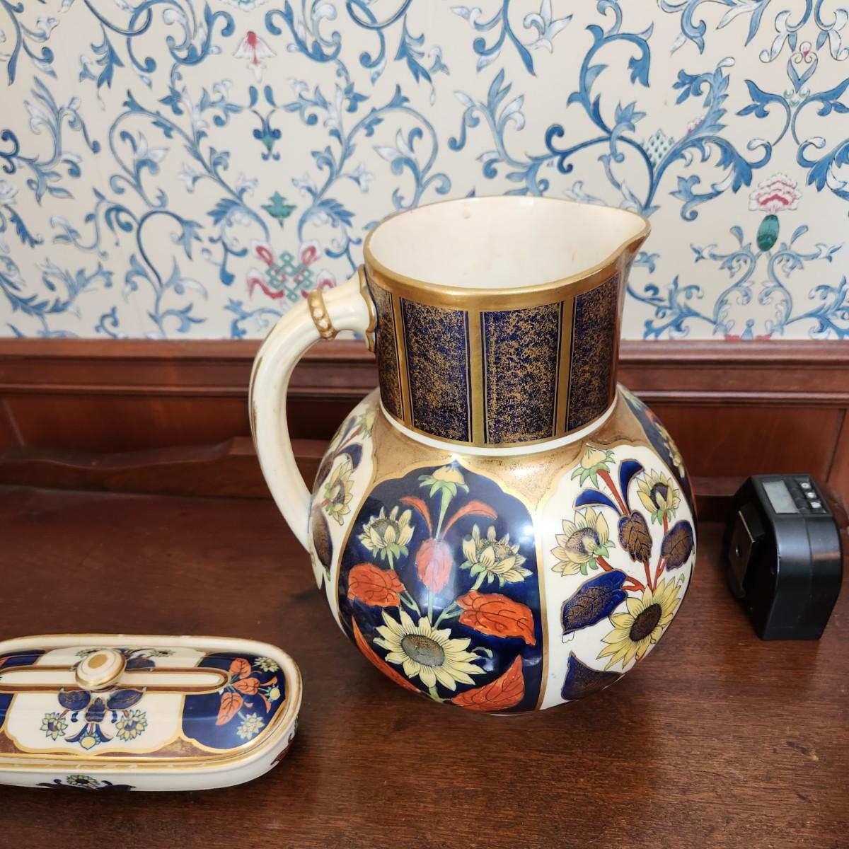 Vintage Water Pitcher and Toiletry Box Dish British Pottery Hallmarks