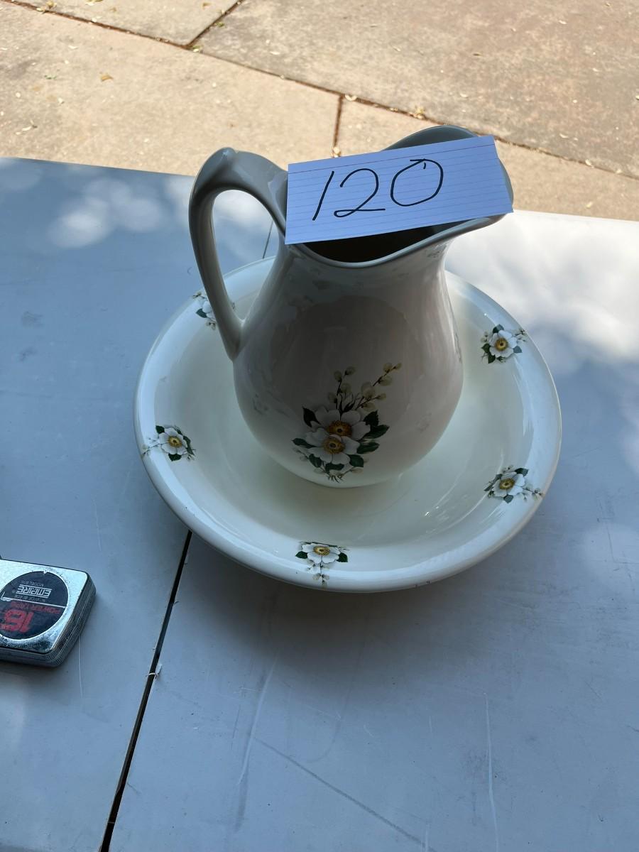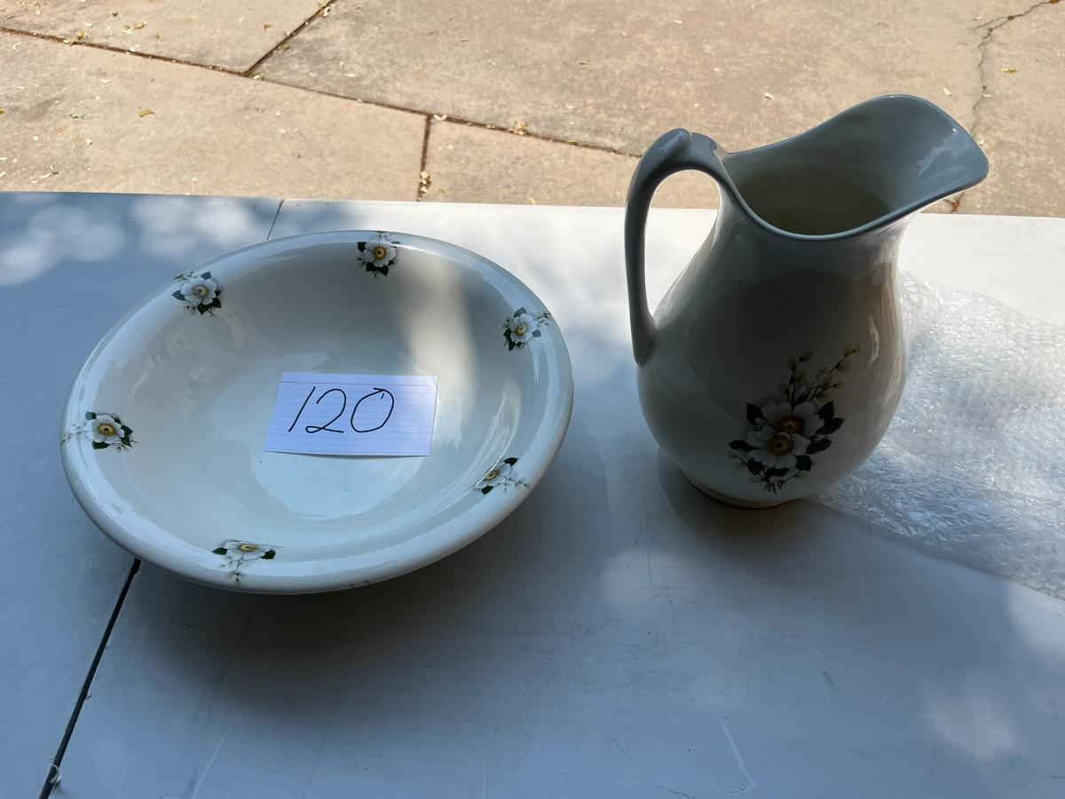 Pitcher is 8" x 10.5" and Bowl is 4" x 13.5"