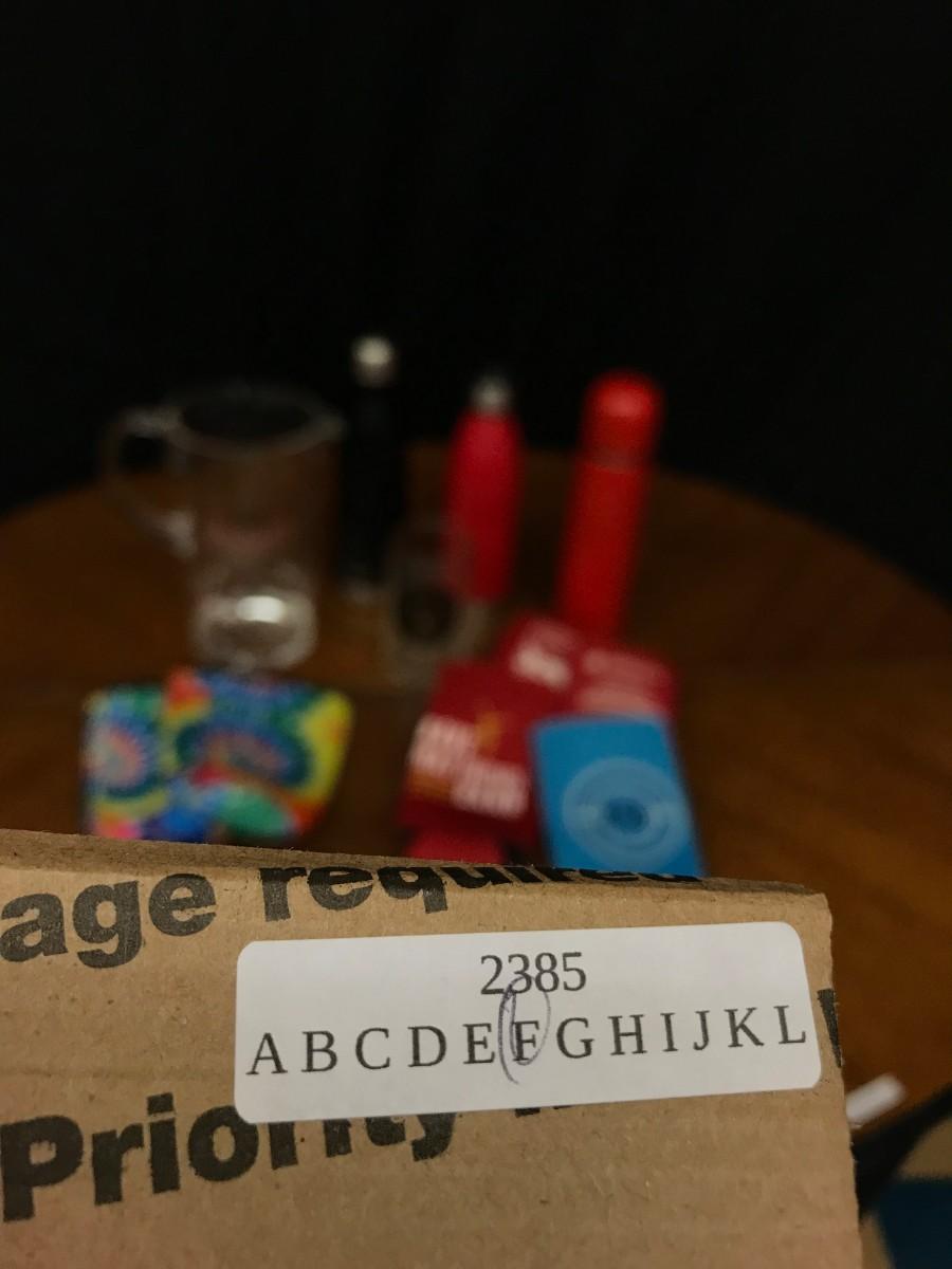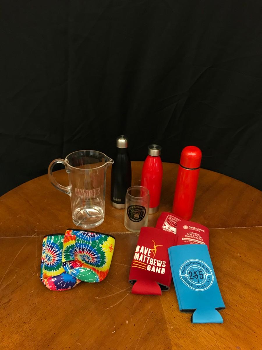 kitchen: pitcher, water bottles, various can coolers, glass;