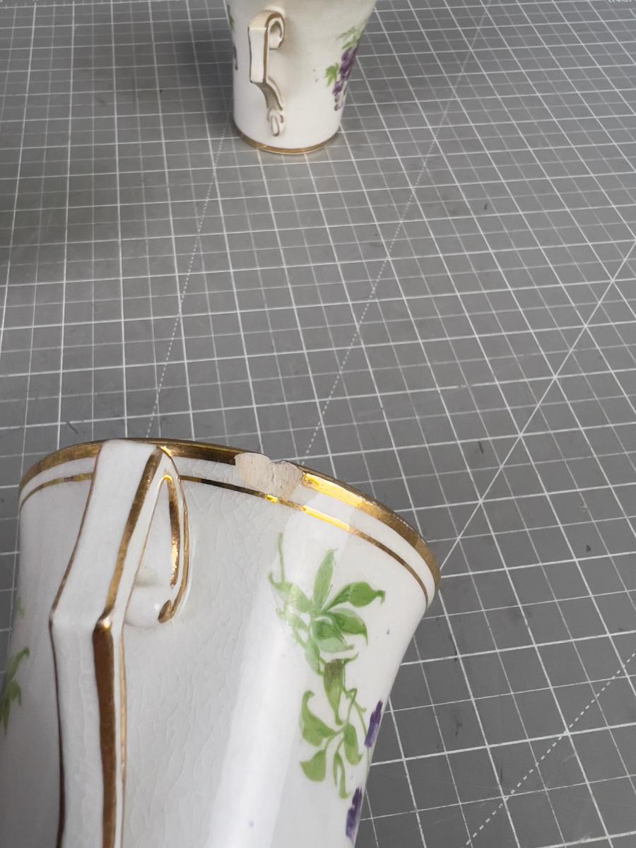 1 Cup has a Chip. Cute! Pretty!