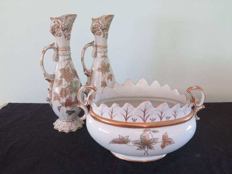 Beautiful hand painted bowl and vases. Andrea S sticker on bottom. Bowl is 12x6x6.5. No chips. Please review all photos and read Terms and Conditions before placing a bid. Pick up is Wednesday, November 20 from 4-7pm and Saturday, November 23 from 9am-2pm in Mantua, New Jersey. All sales are final. All sales are as is, where is. Please bring all boxes, tools, and muscle needed to remove your items. Any photo props are not included. All measurements are approximate. Items come from dog-friendly home.