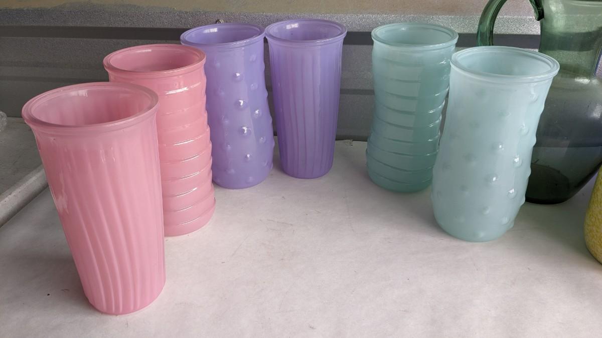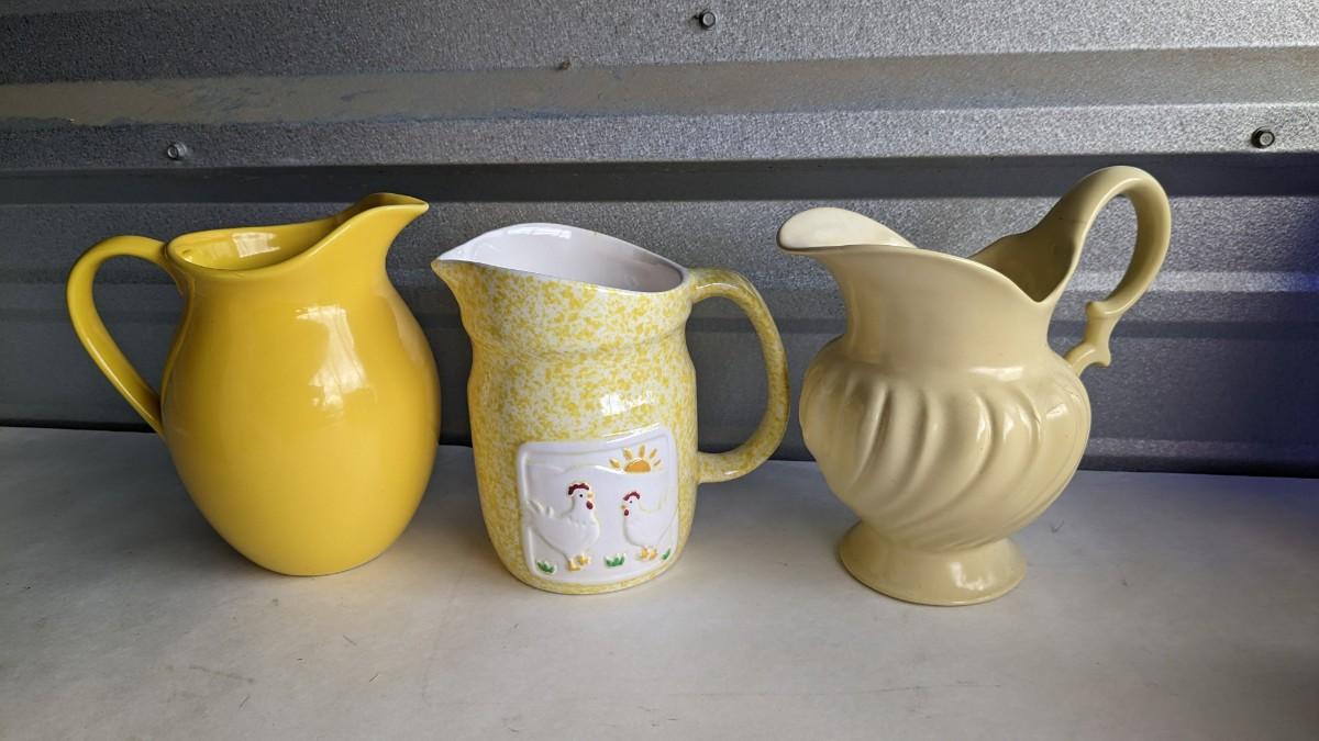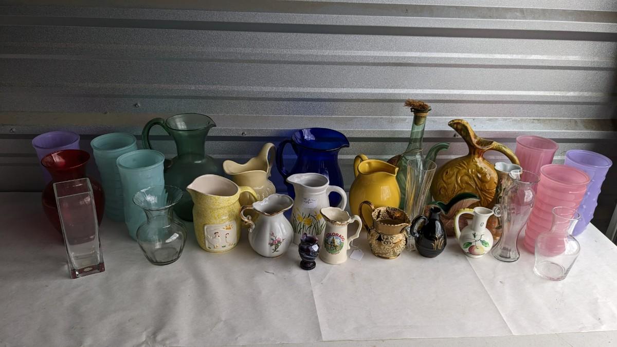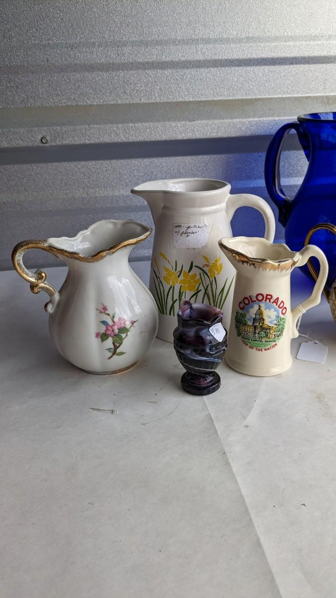 a lovely group of decorative pitchers and glass vases. All in good condition. No shipping. 2616