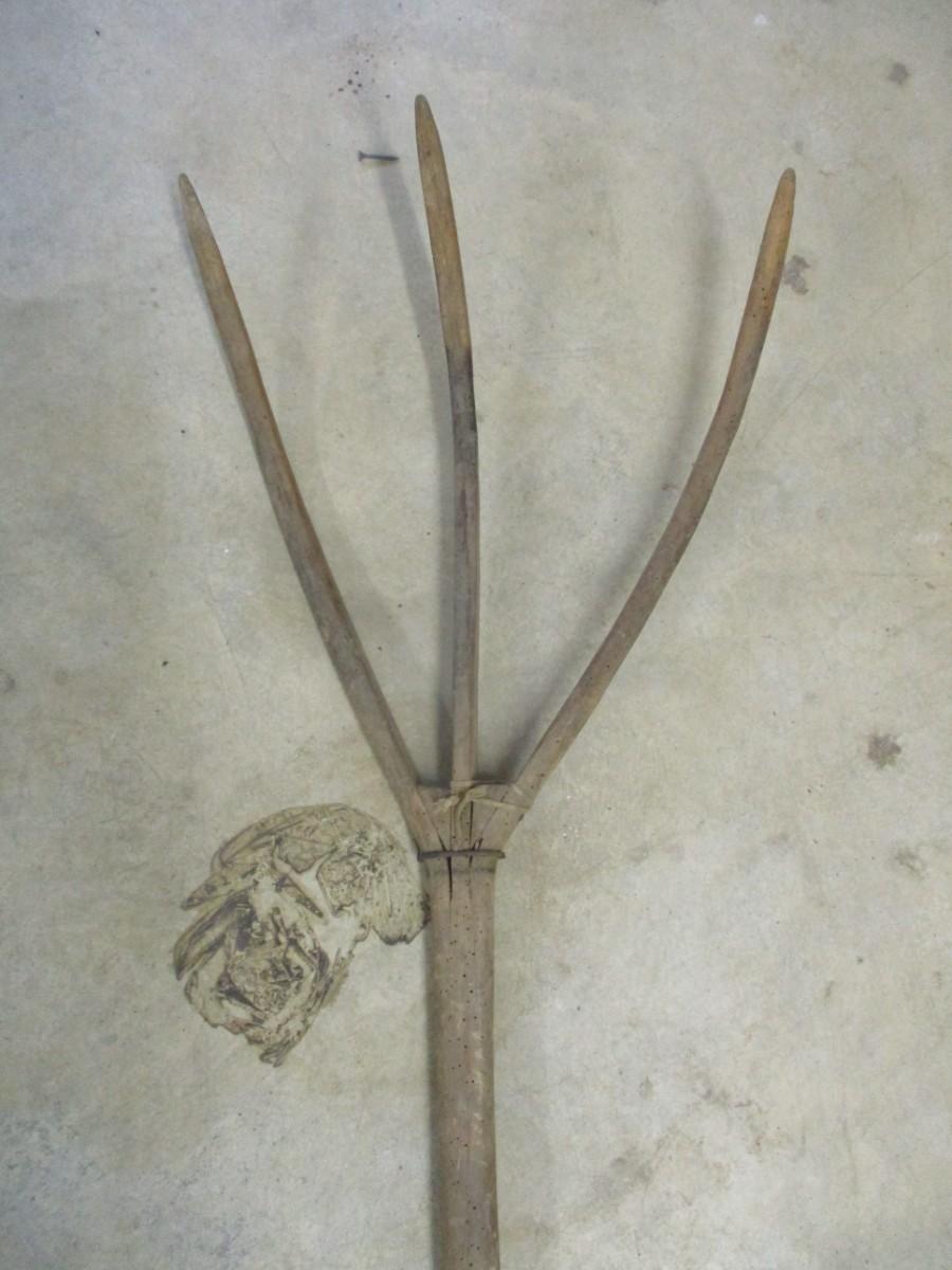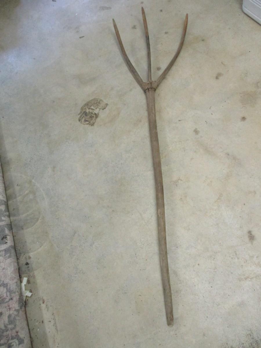 Primitive Three Prong Wood Pitchfork