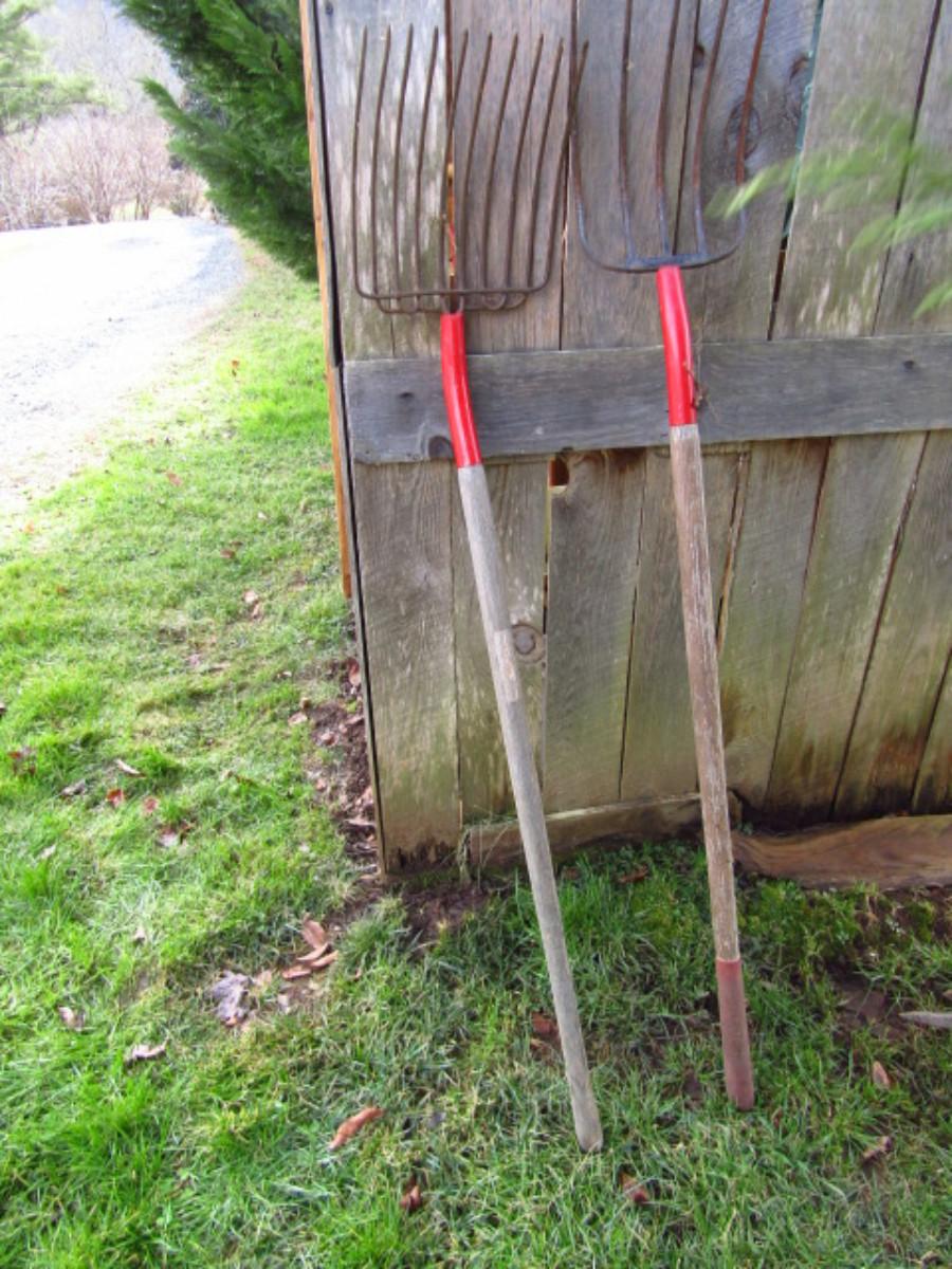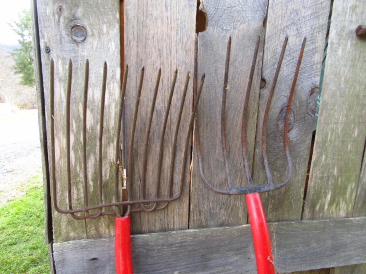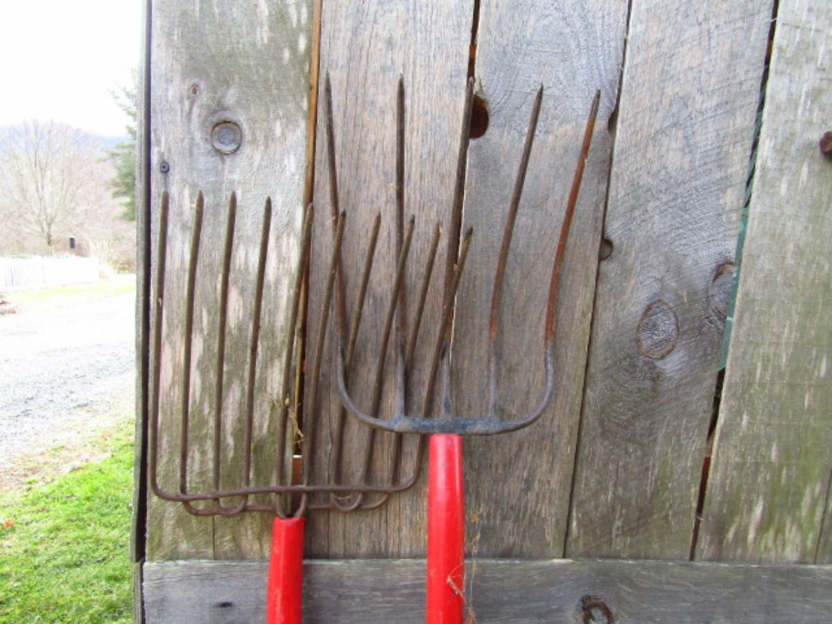 Pitchfork and Ensilage Fork. Heads may be loose and need re-attaching.