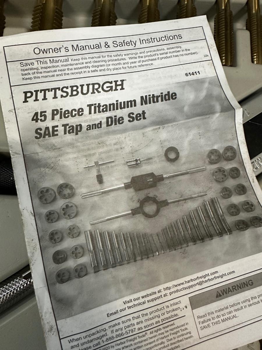 PITTSBURG TAP AND DIE SET 45 PC TITANIUM NITRIDE SAE TAP AND DIE SET W/CASE